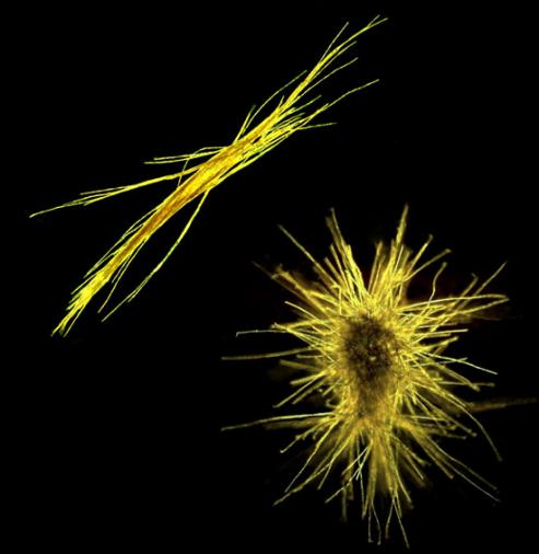 图1. 束毛藻显微图片;束毛藻可以以单体藻丝体存在,或者由藻丝体集群形成束状体(图源:Woods Hole Oceanographic Institution)