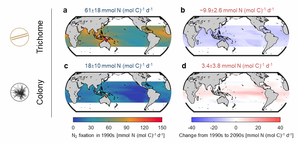Luo, W., Eichner, M., Prášil, O., Zhang, F., Inomura, K., & Luo, Y. W. (2026) Colony formation sustains the global competitiveness of nitrogen-fixing Trichodesmium under ocean acidification. Communications Earth & Environment.