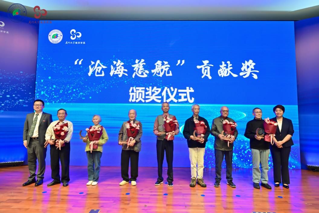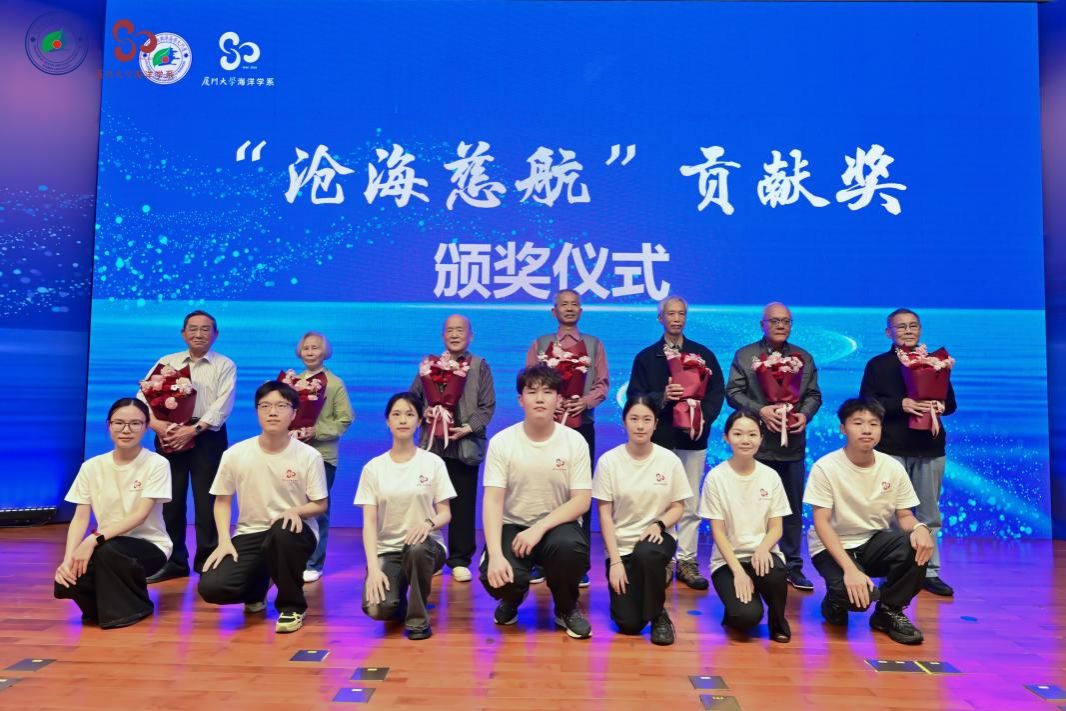 灯塔引航,师恩如光。大会特别设立“沧海慈航”贡献奖,以温情而庄重的方式向深耕海洋学科、年届八旬以上的前辈教师表达敬意,感念他们以毕生所学启迪后学,以躬身实践恪守育人初心。学生代表为到场的蔡阿根、柴敏娟、陈于望、吴国琳、周慈由、李文权、徐茂泉等7位老教师代表献上鲜花,海洋与地球学院党委书记刘艳杰、院长刘志宇为获奖教师代表颁奖。