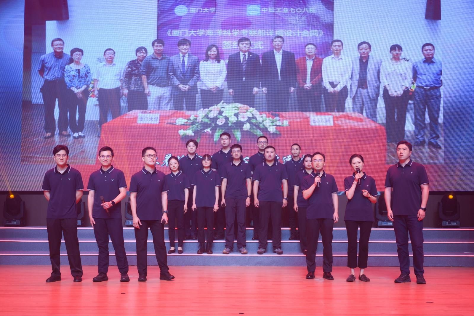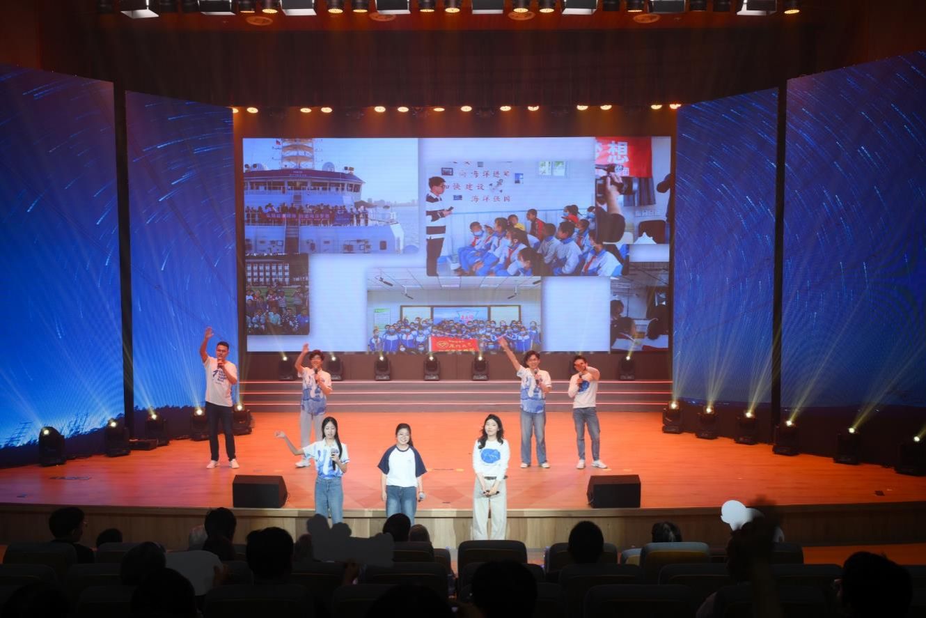 奋楫扬帆,笃行不怠。一代代厦大海洋人接续书写蔚蓝答卷,向着世界一流奋勇攀登。"嘉庚"号航次首席科学家与船管中心工作人员以一曲《海阔天空》唱出海洋人乘风破浪、探秘深蓝的无畏豪情和矢志一流、向海图强的使命担当。琴弦波动,笛音轻吟,民乐合奏娓娓道来,勾勒与海相伴的诗意。"山海之约"实践队、"嘉梦海扬"志愿服务团的学生代表们以歌为帆,将一路山海载至现场、传递温暖。"海二代"童声朗朗,父母轻声应和、言传身教,一唱一和间,是海洋人家风传承,是奔赴星辰大海的接力。