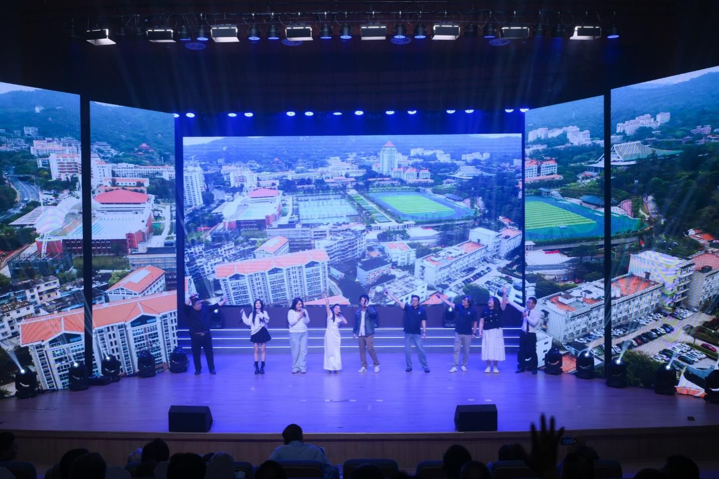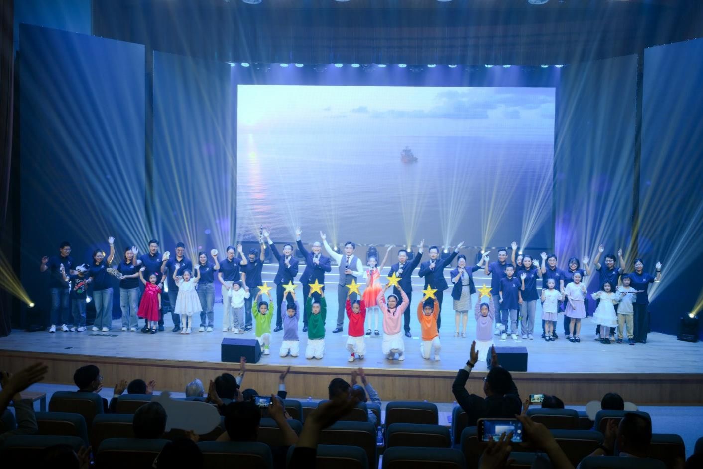 向海图强,再启新航。站在新的历史起点,厦大海洋人勇担使命,以奋斗之姿奔赴深蓝。年轻师生们将携手同行的温暖、逐浪出发的活力与对未来的憧憬,融入每一个动作,舞出了海洋人向海而生的蓬勃朝气。师生大合唱舒缓深情,歌声里藏着对海洋馈赠的感恩,对前辈筚路蓝缕的致敬,唱出几代海洋人深耕蓝色疆土的坚定,也唱出了厦大海洋人以海为志,向着海洋强国扬帆再出发的决心。联欢会在《新的天地》磅礴的旋律中圆满收官,大气恢弘的歌声与现场灯光交织,将八秩风华与海洋深情凝成永恒回响,激励全体海洋人以赤子之心再赴深蓝,在海洋强国的时代浪潮中开辟新的天地。