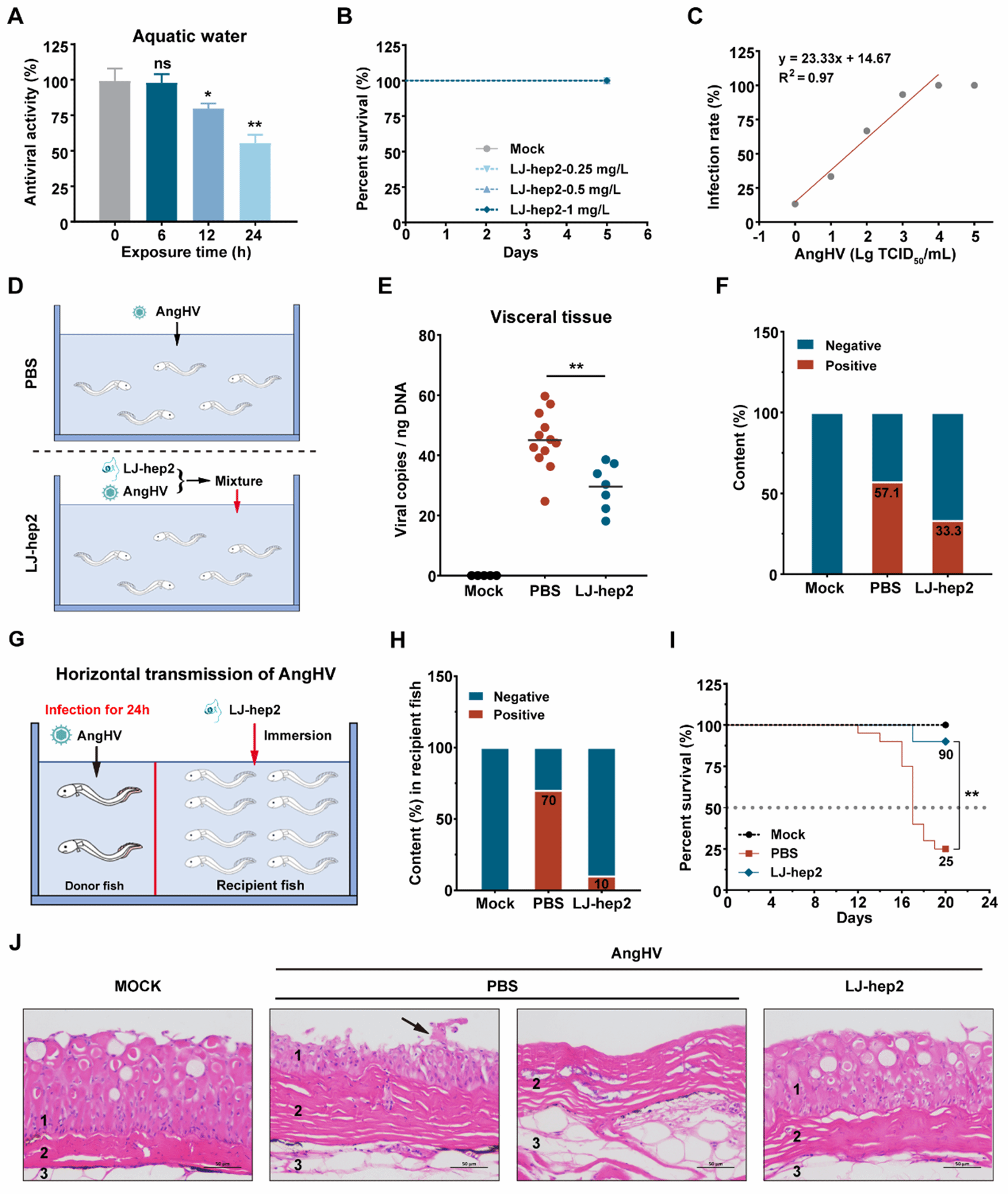 图3 抗菌肽LJ-hep2在鳗鲡体内抑制AngHV感染