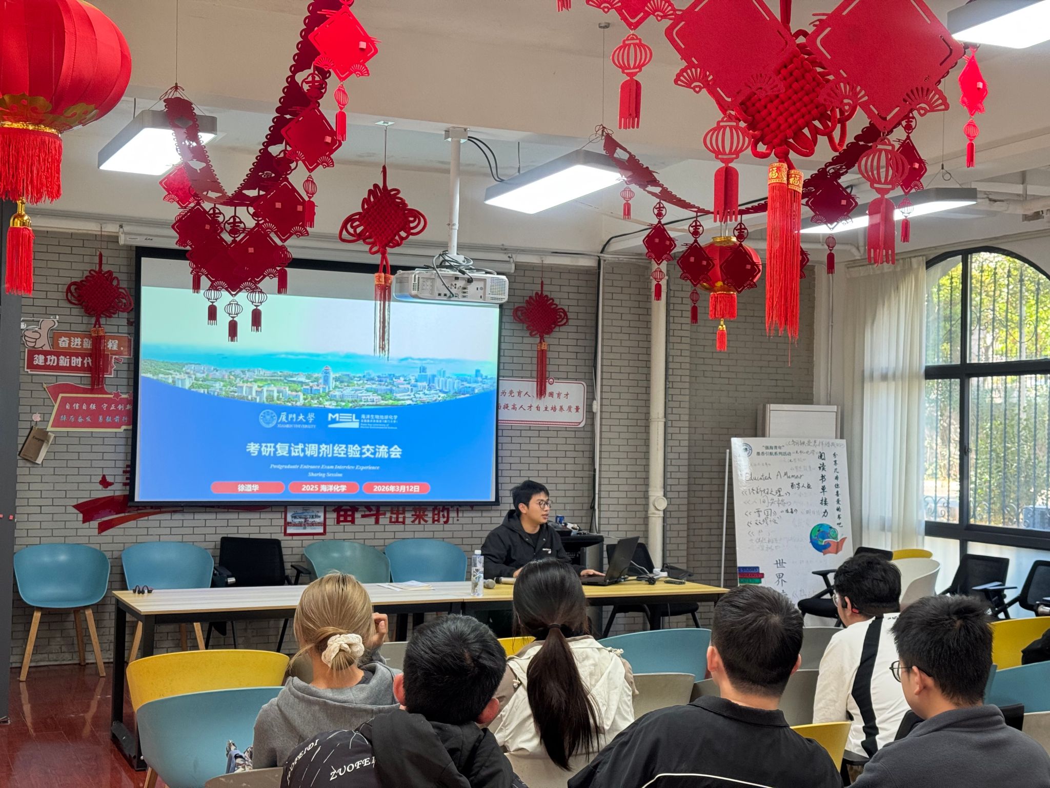 3月12日下午,厦门大学海洋与地球学院于“海洋之家·一站式”学生社区成功举办考研复试经验分享会。活动旨在助力学子科学备考,特邀学院研究生教学秘书邹良荣老师与三名优秀在读研究生代表到场分享心得。交流会由学院本科生黄晶晶主持。
