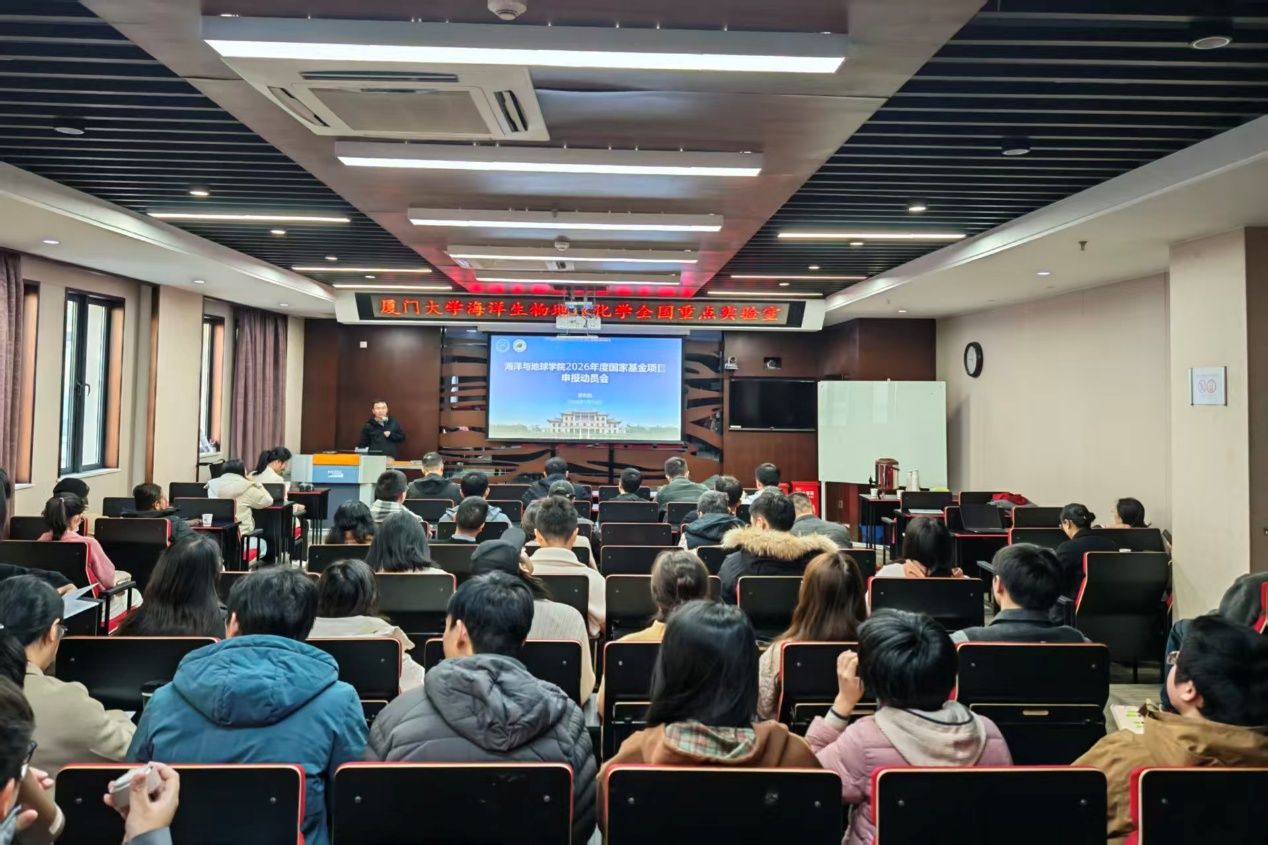 为系统推进2026年度国家自然科学基金项目申报工作,精准把握最新政策动向与资助导向,1月12日上午,厦门大学海洋与地球学院在周隆泉楼召开2026年度国家自然科学基金申报动员会。学校科技处副处长李荔敏应邀作专题报告,学院拟申报2026年度国家基金的科研人员、博士研究生和科研助理等70余人参加了会议。