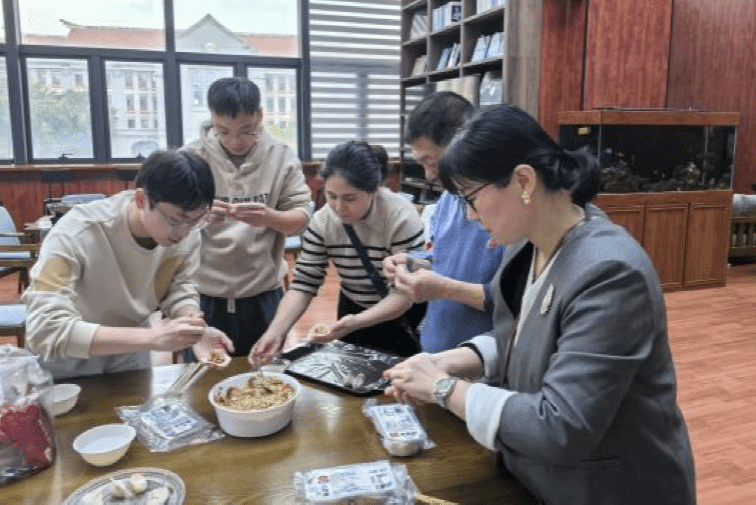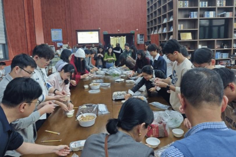 随后,活动地点转移至周隆泉楼咖啡厅,进入传统美食体验环节。现场洋溢着温馨愉悦的气氛,大家围坐在一起,亲手制作象征团圆与温暖的冬至饺子和汤圆,在协作中增进了解,在欢笑中加深情谊,共同营造了一个其乐融融、充满温暖的 “支部大家庭”。