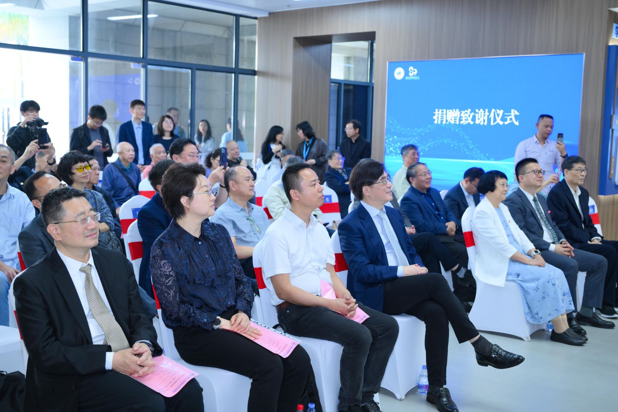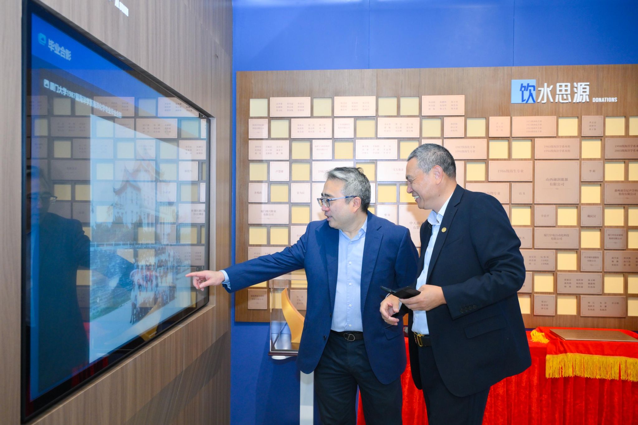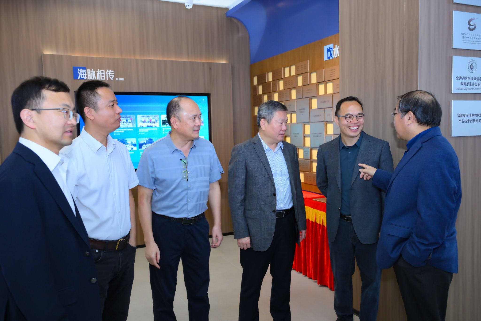 仪式最后,由 1986 级海洋生物校友共同捐资建设的学院展厅正式落成开放。学院展厅系统梳理了学科百年发展历程,集中展示人才培养、科研创新等方面的办学成就,是文化育人与对外交流的重要平台。