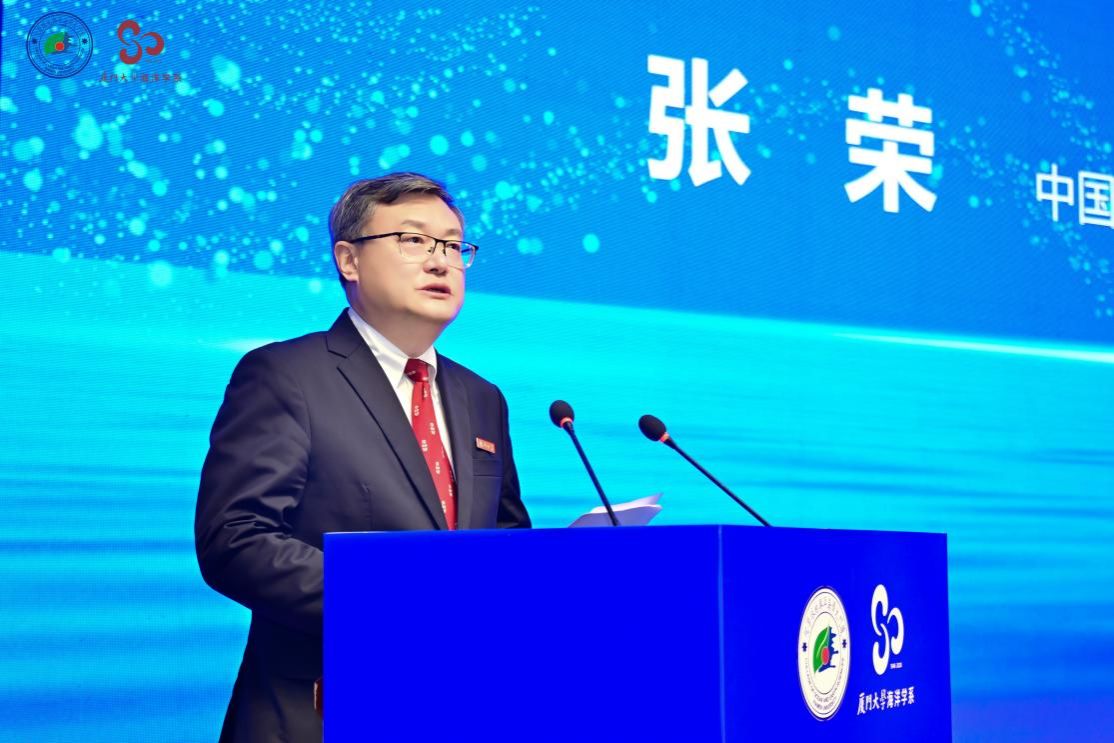 张荣代表学校向海洋学科全体师生员工和海内外校友致以热烈祝贺,向长期以来关心支持厦大海洋学科建设发展的各级领导、各界人士、各位朋友表示衷心的感谢。他表示,厦门大学因海而生、伴海而兴、依海而强,海洋学科是学校办学历史最悠久、实力最雄厚的学科之一,其发展始终与国家命运同频共振。一代代厦大海洋人胸怀家国、逐浪深蓝,书写了从拓荒起步到世界一流的壮丽篇章。近年来,海洋学科紧紧抓住发展机遇,整体实力稳步提升,已稳居全国A+行列、跻身世界一流,成为我国海洋科教事业中一支不可或缺的重要力量,在国际上形成重大影响力,日渐成为海洋生物地球化学研究的国际标杆。面向未来,他希望海洋学科能坚持使命引领,夯实“向海图强、为国护海”的蔚蓝根基;坚持立德树人,培养“情系家国、扬帆致远”的强海青年;坚持创新驱动,锻造“经略海洋、探源万顷”的深蓝重器;坚持开放协同,构建“守望瀚海、共护大洋”的蓝色高地。