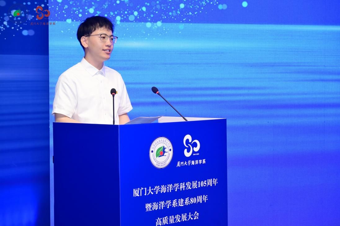 学生代表,海洋物理专业2023级博士生郑浩赐分享了自己从本科到博士扎根厦大海洋的七年时光,表示作为生逢海洋强国建设伟大时代的学子,将怀揣报效祖国的赤诚,在关键核心技术攻坚中贡献力量。