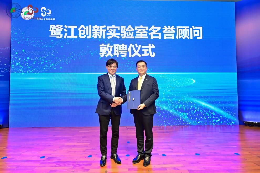 随后的敦聘仪式上,史大林副校长为蔡文炬院士颁发厦门大学杰出访问教授聘书,戴民汉院士为曹晖先生颁发鹭江创新实验室名誉顾问聘书。