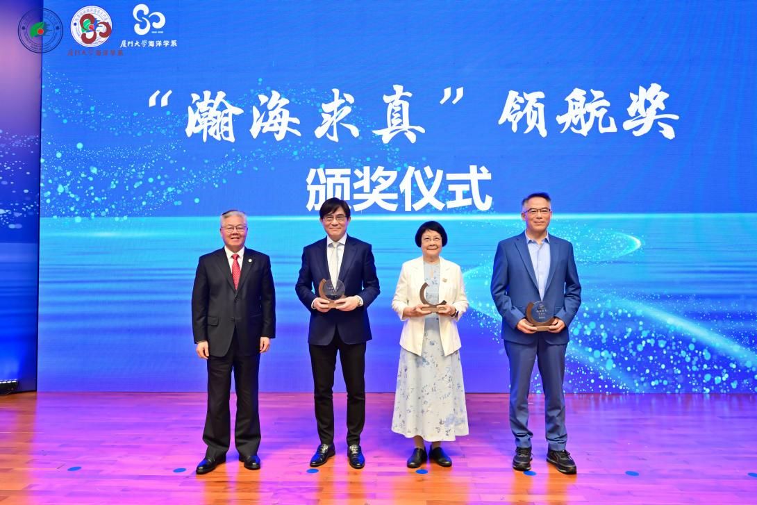 瀚海无涯,求真不止。大会还设立了“瀚海求真”领航奖,向洪华生、焦念志、戴民汉等3位卓越的学者致敬,表彰他们为厦门大学海洋学科发展所作出的开创性与引领性贡献。厦门大学原校长朱崇实为获奖者颁奖。