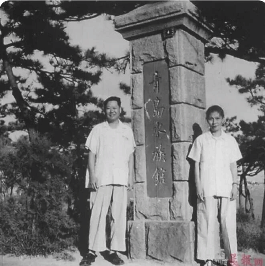 唐世凤与夫人王敏(九三学社社员、九三学社青岛分社第二届委员会委员)在青岛水族馆前合影