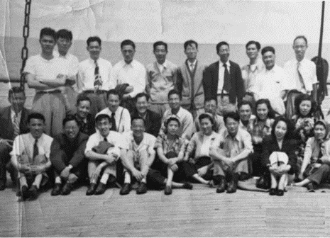 李法西与乘坐克利夫兰总统号第19航次回国人员合影(后排左6)