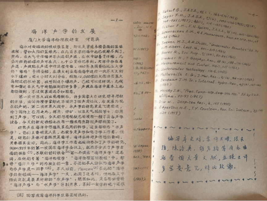 自上世纪50年代起,何恩典在厦门大学这所因海而生的校园里躬耕不辍、擘画蓝图,前瞻性地开展海洋水文物理和海洋声学的研究,他深厚的数学物理功底迅速在海洋物理的土壤中扎根生芽,取得了一个又一个开创性的科研成果。