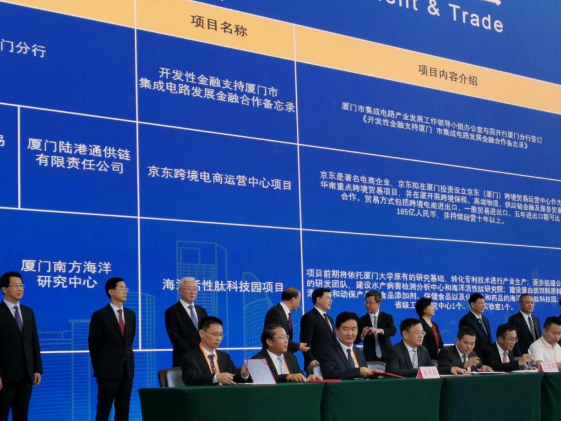 2019年9月8日下午,2019厦洽会厦门团签约仪式在会展中心一楼大堂(签约中心)举行。省委常委、市委书记胡昌升、市长庄稼汉等领导见证项目签约。由翔安区政府、福建省海嘉生物科技有限公司、厦门大学海洋与地球学院、厦门南方海洋研究中心秘书处四方签署协议的“海洋活性肽科技园”项目(现已入驻厦门市南方海洋创业创新基地)现场首批签约,海洋与地球学院院长、抗菌肽团队负责人王克坚教授代表出席签约仪式。