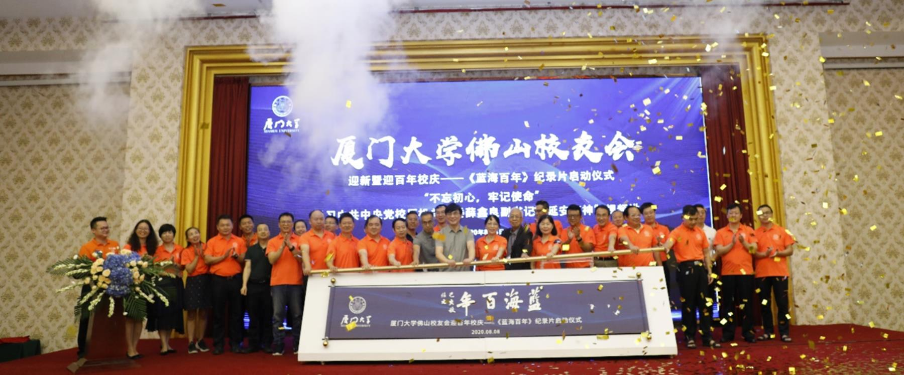 8月8日,厦门大学佛山校友会隆重举行迎新活动暨迎百年校庆——《蓝海百年》纪录片启动仪式,广东省多地校友会代表、佛山各级校友近两百人欢聚一堂、共襄盛会。中科院院士、厦门大学校务委员会副主任戴民汉,厦门大学校友总会秘书长曾国斌,百年校庆办专职副主任、学校办公室副主任洪海松,教育发展基金会秘书长特别助理张朝晖,海洋与地球学院党委副书记郑碧娇、党委委员丁少雄教授、办公室主任陈丽丹,《蓝海百年》纪录片总制片人、1983级海洋系校友李河典等人受邀参加了本次活动。