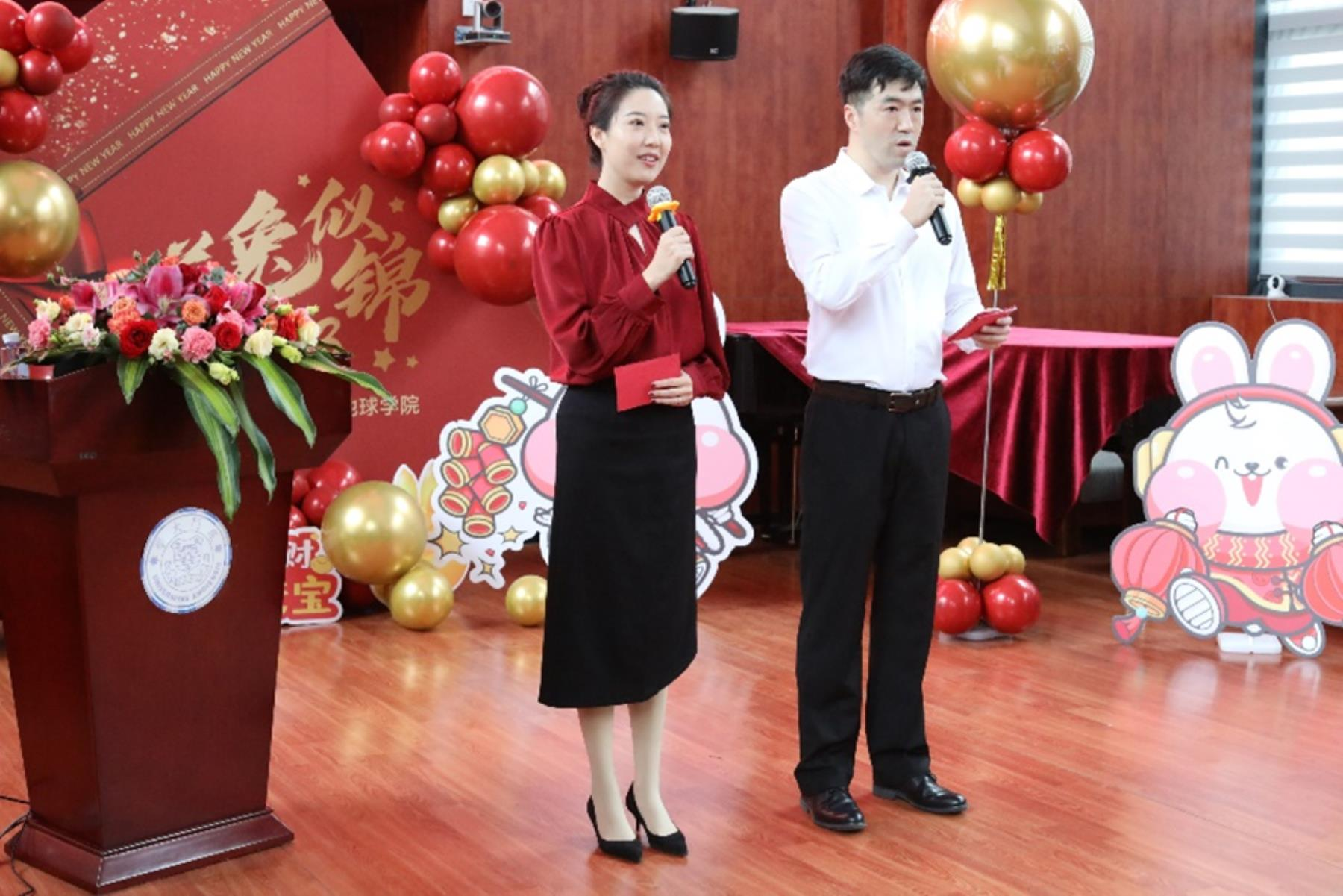 瑞兔迎春,宏图新启。1月13日上午,海洋与地球学院2023年新春茶话会暨南强青年学者论坛学院分论坛以线上线下结合的方式在周隆泉楼举行。学院师生员工、离退休老同志、青年学者齐聚一堂,共迎新春、共叙情谊、共谋发展、共话未来。活动由蔡笑霜、杨进宇主持。