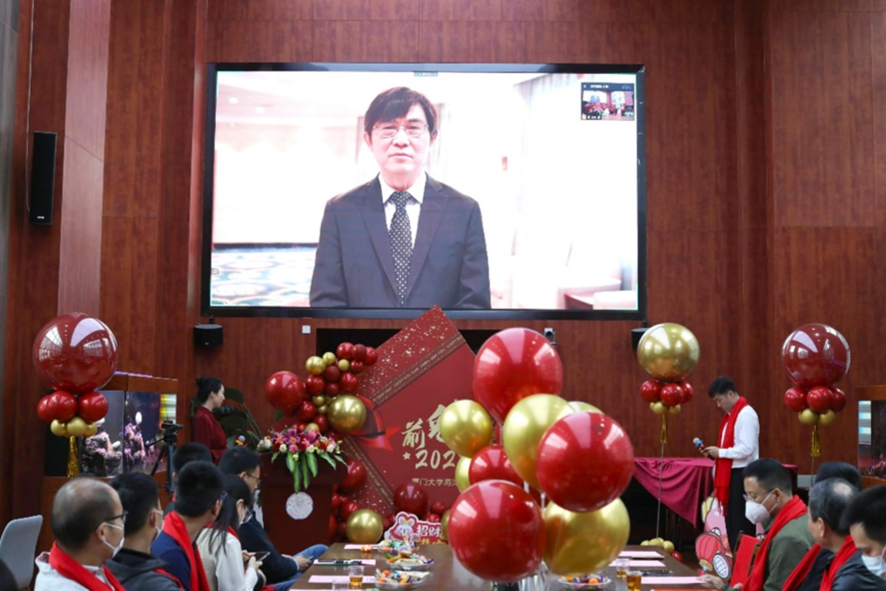 随后,戴民汉院士通过视频向在场的师生送上了新年祝福,与师生共享新年喜悦、共畅美好未来。同时,在“嘉庚”号科考船上执行科考任务的科考队员们、远在雪龙2号的中国第39次南极科学考察队队员们、驻守科研基地的同学们、许继聪同学也通过录制视频的方式,送上了特别的新春祝福。