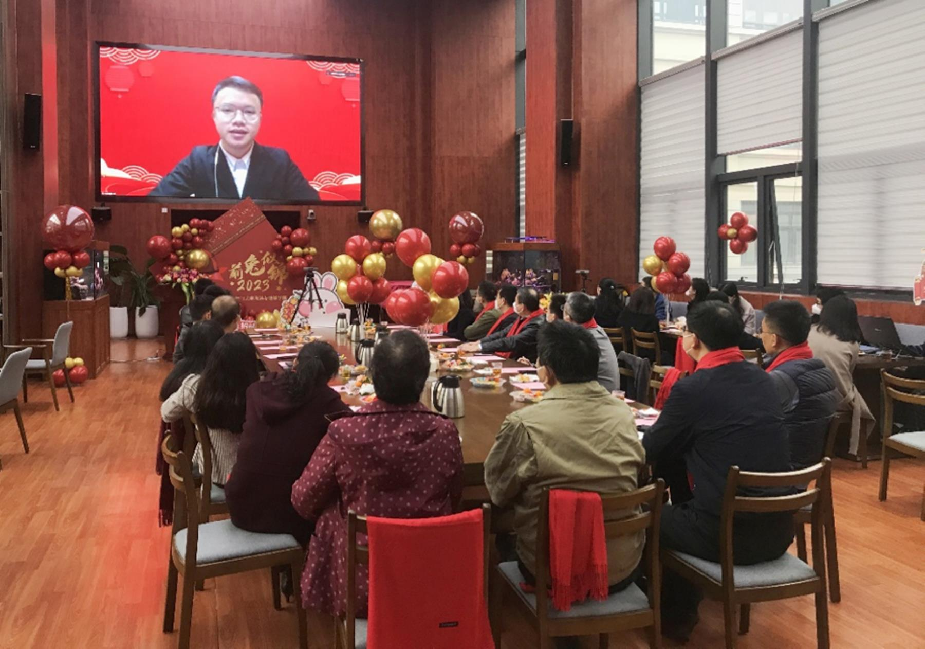 在这个恭贺佳节的日子,学校在科学艺术中心举行新春茶话会,学院设立分会场,与会人员线上观看了学校的新春茶话会直播,通过云端联结的方式同全校师生一起感受了欢乐祥和的节日氛围。2021年度“中国自强之星标兵”获得者,我院硕士生许继聪通过视频连线学校主会场,在“云端”为全校师生送上了新春祝福。
