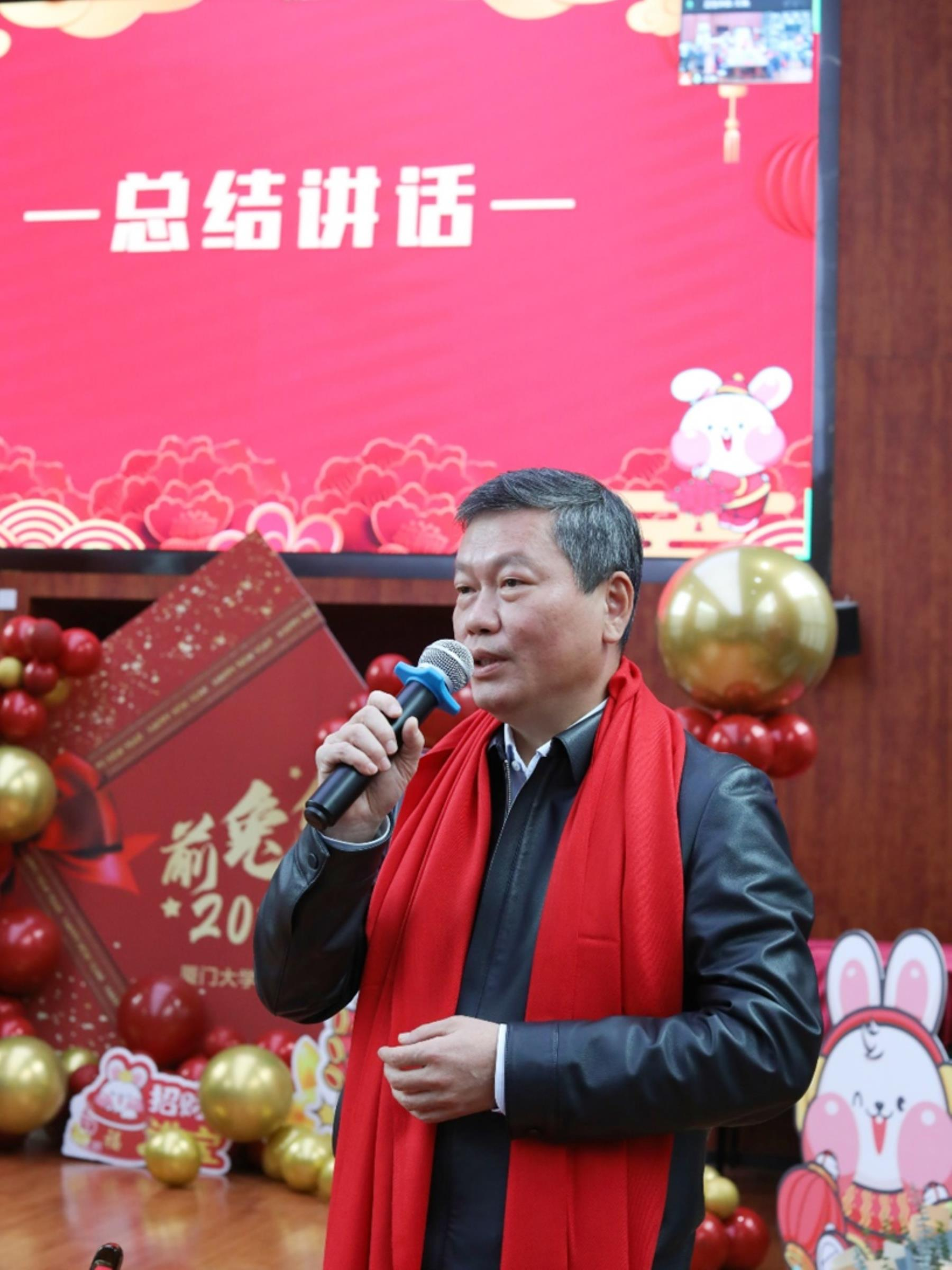 最后,学院党委书记吴立武深情寄语,他向组织此次活动的全体工作人员表示衷心的感谢,向离退休老同志致以节日的祝福和诚挚的问候,向奋斗在学院事业发展中的每一位师生员工表达崇高的敬意。吴立武表示学院的良好发展态势离不开历代的海洋人的锐意进取和艰苦奋斗,提议全场用热烈的掌声感谢几代海洋人的付出和努力。同时,他代表学院向线上线下参会的海内外青年才俊们表示热烈欢迎,学院将坚持“人才是第一资源”,秉承爱才重才惜才的优良传统,致力于打造“近者悦,远者来”的创新人才体系,期待更多的青年才俊加盟厦大海洋。