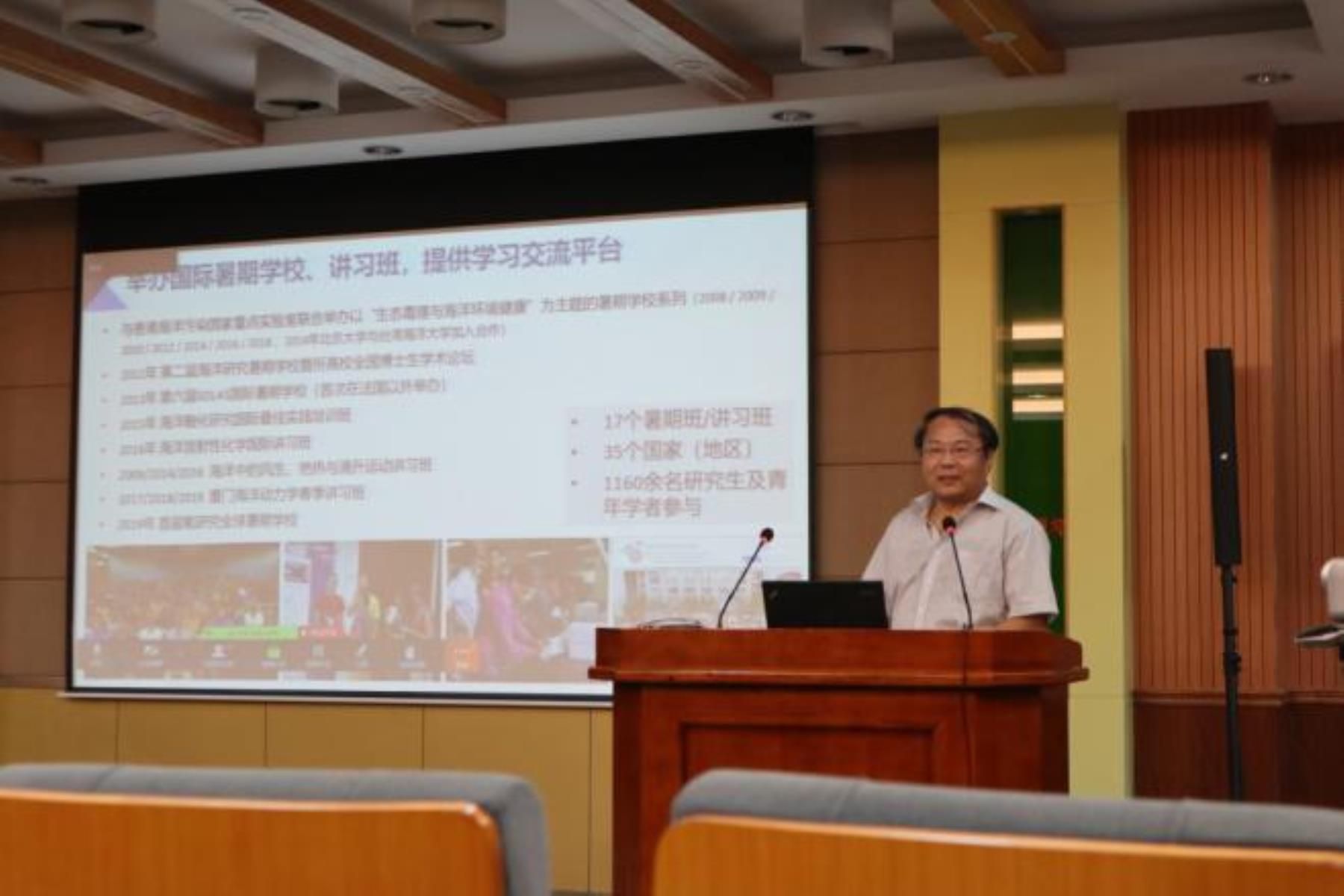 随后,王克坚院长介绍学院整体情况。他首先介绍了厦门大学和海洋学科的发展历史,紧接着回顾了近年来学院举办夏令营的情况。他指出,夏令营举办至今,众多来自全国各地的优秀营员纷纷选择来到厦门大学继续深造,成为优秀厦大人的一员。同时,他从学院机构与平台、师资队伍、研究团队及其代表性成果、科研平台与支撑体系、国际合作与交流等方面介绍了海洋与地球学院的概况,他指出,厦大海洋学科优秀的科研平台、雄厚的科研实力能够为广大学子的科研和未来发展提供强有力的支撑。最后,王克坚院长祝愿各位同学能够在厦大找到自己的科研兴趣,期待新鲜力量的加入。