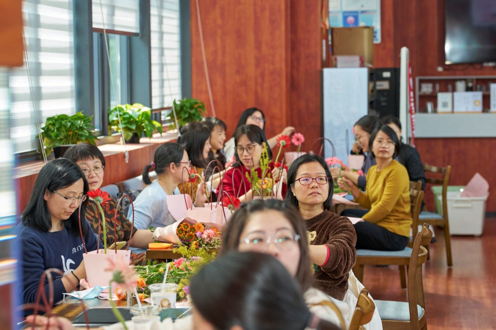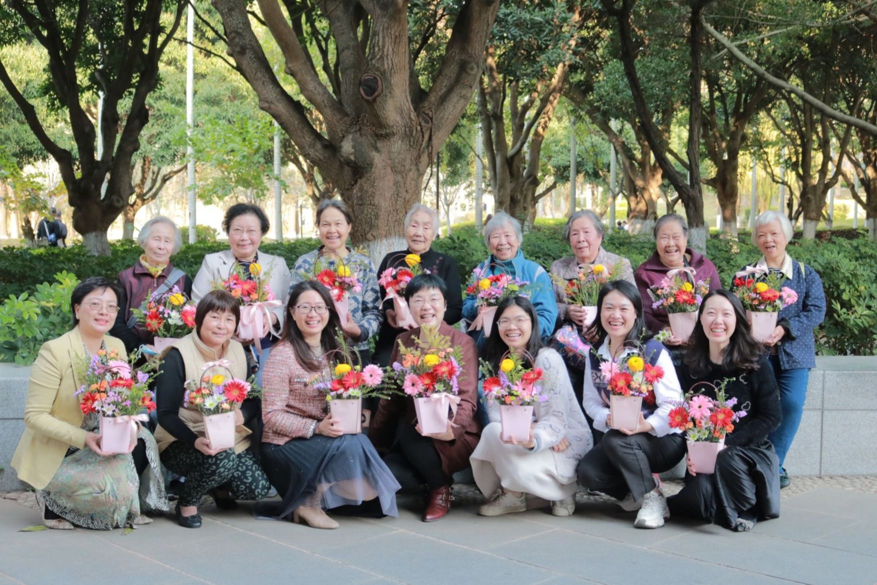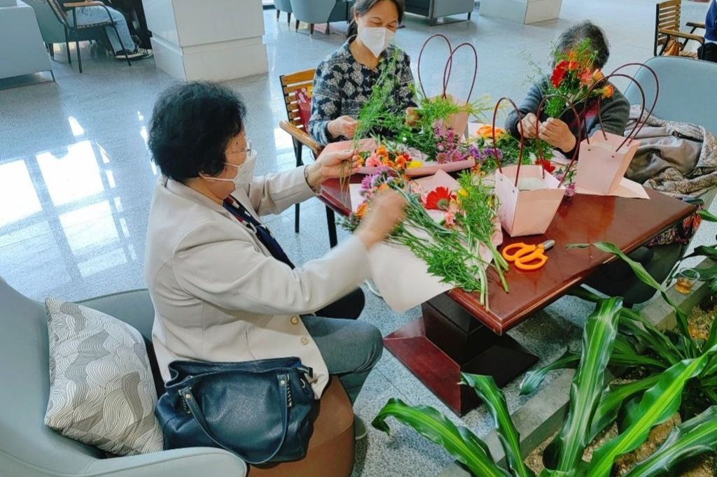 3月8日-9日,学院分别在翔安校区和思明校区为在职和退休女老师举办了趣味DIY插花沙龙活动,学院工会副主席陈丽丹主持活动。学院党委副书记邱荣锋出席活动并讲话,他代表学院对默默奉献的女教师们致以衷心的感谢和节日的问候。花艺景观设计师刘婷进行现场教学,介绍了不同花材的特点、养护方法及插花技巧。在老师的指导下,大家兴致盎然地一边实践插花一边交流,活动现场弥漫着鲜花的芬芳,不一会儿,一篮篮错落有致、色彩鲜艳的插花作品便展现在大家面前。女老师们笑靥如花,感受着花草之美、自然之美的同时,也感受到了学院的深切关爱。