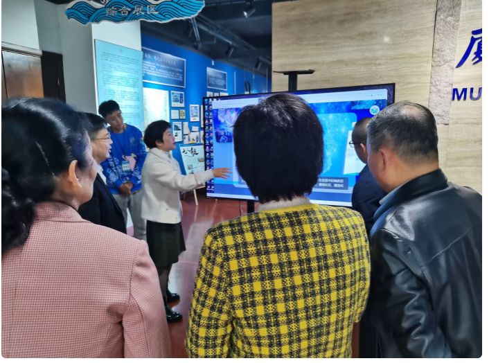 邓朝晖副校长首先介绍了厦门大学16个展馆的建设成绩和管理机制,重点强调了人类学博物馆和海洋科技博物馆这两个展馆的百年历史积淀。吴立武书记从海洋科学人才培养“蓝色摇篮”讲起,介绍了厦大海洋学科的发展历史和现状,重点介绍了近海海洋环境科学国家重点实验室、海洋科技博物馆、东山野外观测站等重要学科平台。海洋科技博物馆负责人张朝霞老师就博物馆的历史沿革、展品研发与成果转化、志愿者的培养以及博物馆取得的科普成效等方面进行了讲解。杨洲一行对博物馆的数字化建设和科研成果转化等大为赞赏,表达了未来开展进一步合作的强烈意愿。