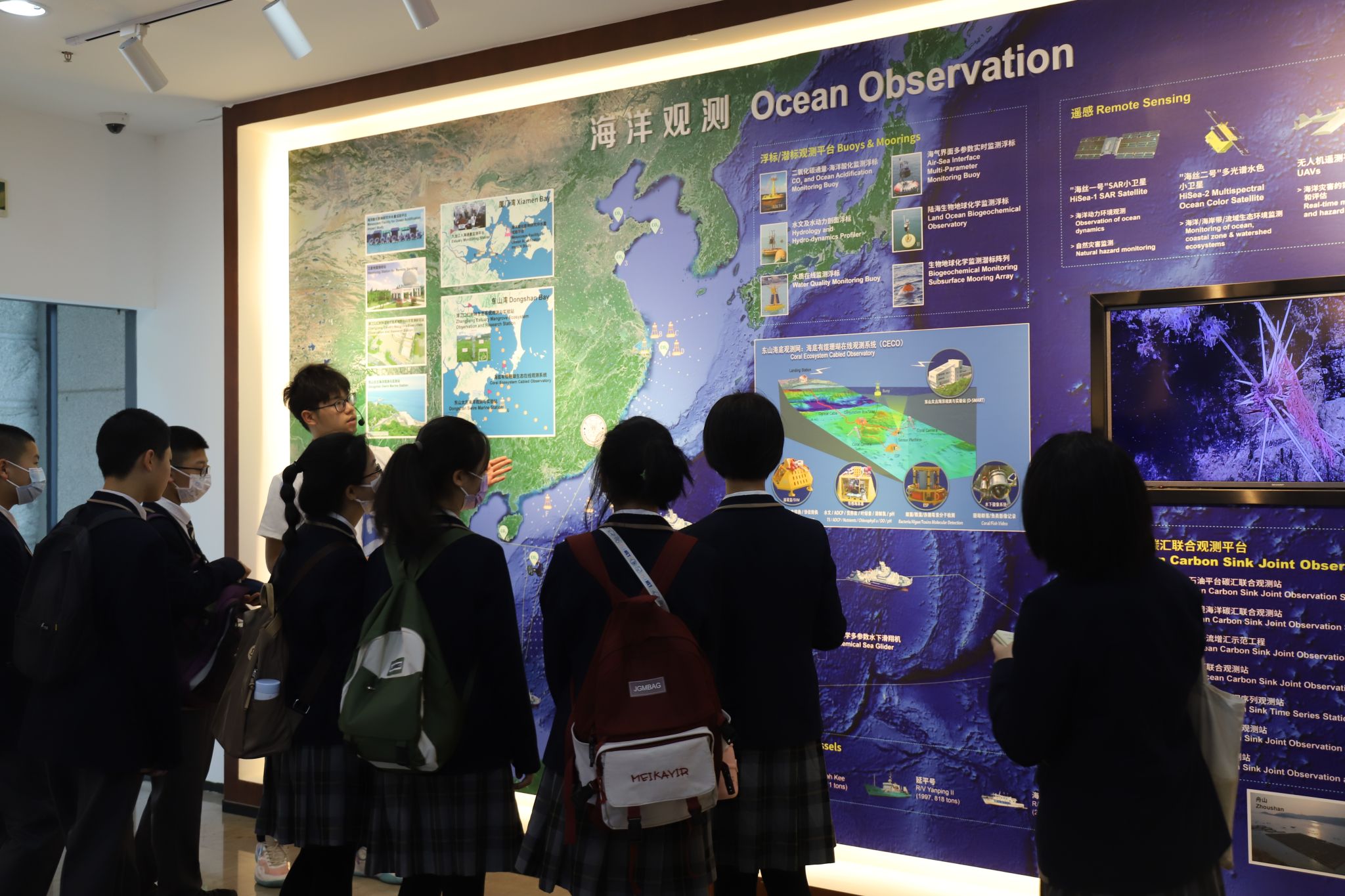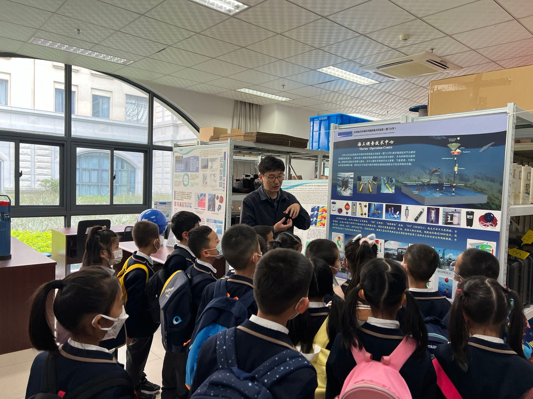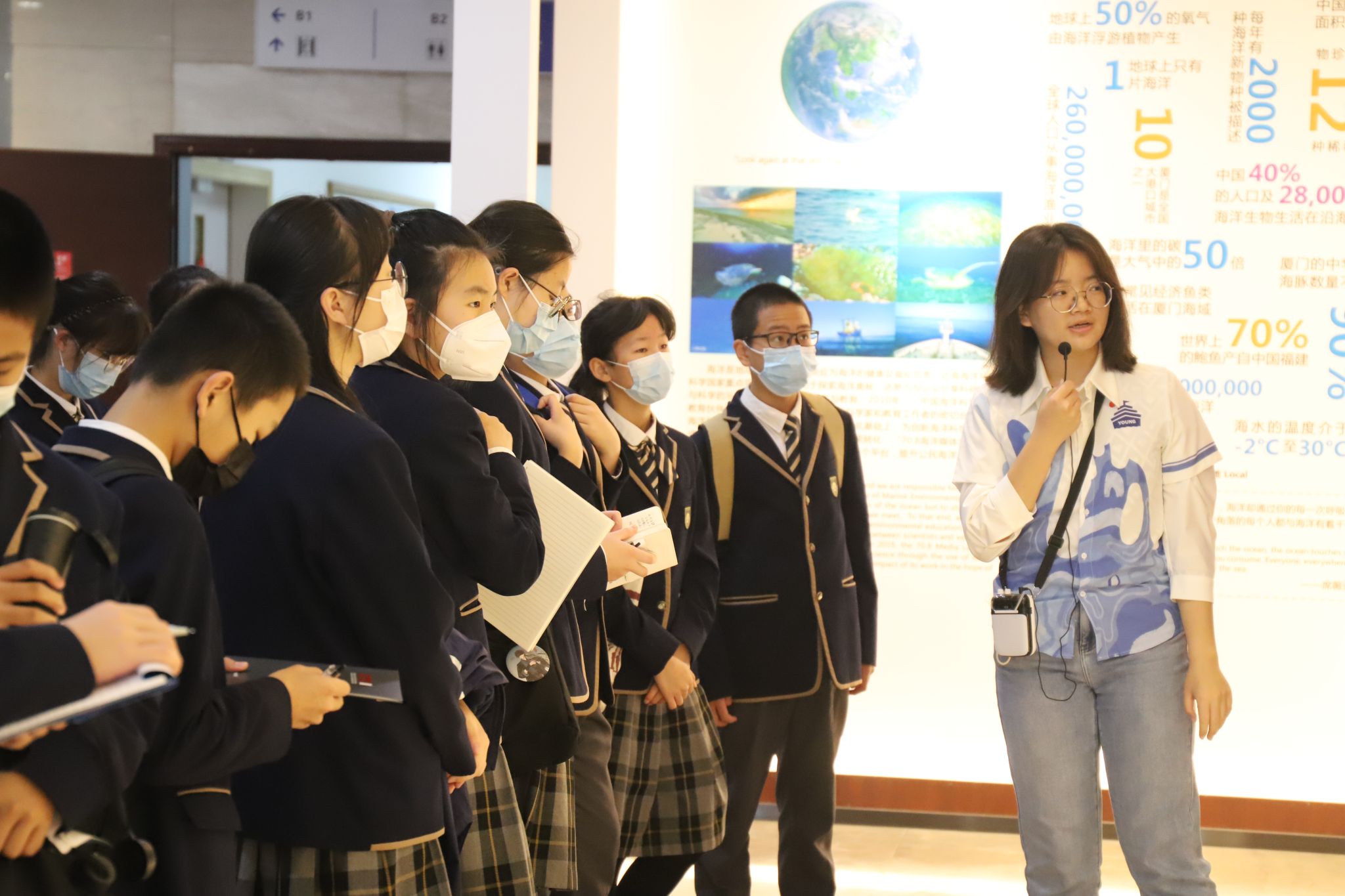 此次研学内容包括海洋文化参访、实验科创课和科普体验三大类活动。师生首先参观了海洋科学文化长廊,厦大海洋学科史长廊、海陆空一体的海洋观测体系、画工细腻的海洋生物教学挂图、设计精美的贝壳DIY作品、视角独特的海洋主题影像,让师生们了解了厦大海洋学科的发展,认识了海洋立体多维观测体系,感受到了浓郁的蓝色文化氛围。