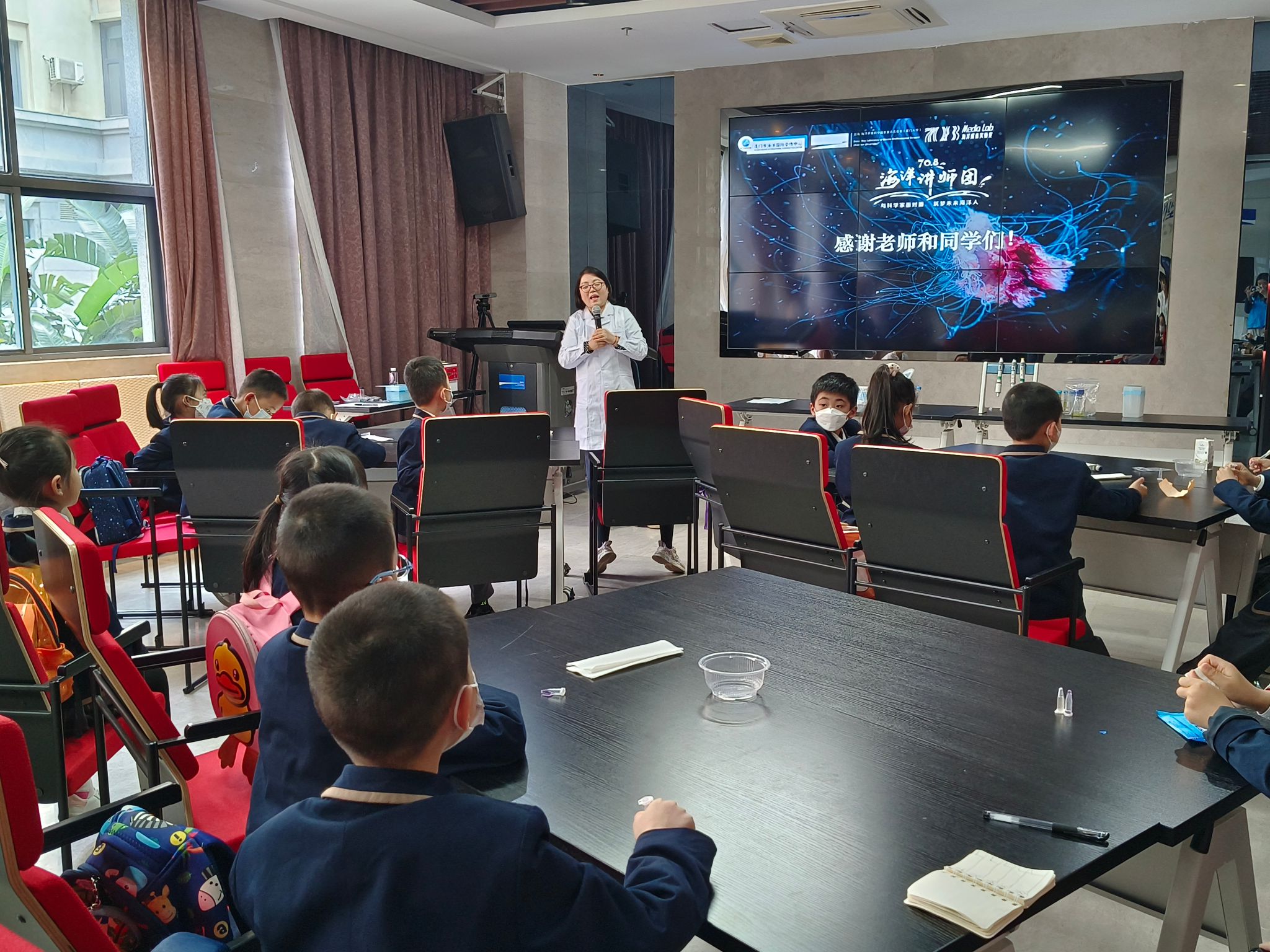 “探秘水下世界”科普体验,通过科普微讲座、VR水下畅游、模拟水下导航、水下机器人操控等方式,带领师生们在模拟体验中解开海底科研的秘密。师生们还参观了海上调查技术中心、质谱中心、海洋微型生物保种中心,了解海上调查装备、海洋元素检测和海洋微型生物保种的知识。参访期间,学生们与讲解老师积极互动,共同探讨了有趣的科学问题。