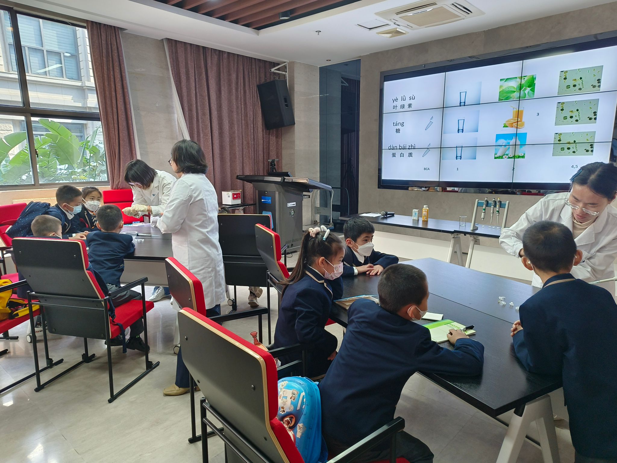 唐甜甜老师为一年级学生上了一堂《认识海洋浮游生物》海洋实验科创课,带领大家观察藻类,通过生动的讲解和亲手实验让大家了解浮游植物和有机物等概念,进而以浮游植物为起点,学习环境变化,了解科学家的研究日常。