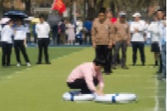 绿色的运动场上彩旗飘扬、春意盎然。海洋与地球学院运动员代表昂首阔步进入会场。本次运动会以八段锦展演作为开场。八段锦是中华传统强身健体功法,分为八段,每段一个动作,可舒展筋骨、疏通经络。伴随着舒缓的音乐,老师们全神贯注,将每一个动作的意念通达身体的各个角落,身姿舒展犹如一幅幅展开的绚丽锦缎。随后进行健身操展演,在老师的带领下,运动员们合着欢快的节拍舞动身体,现场弥漫着青春的气息。