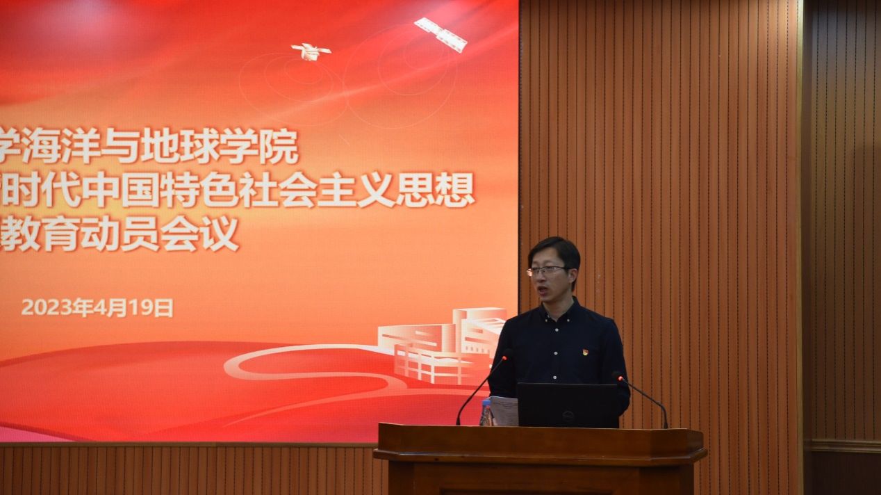 吴立武强调,要深刻学习领会习近平总书记重要讲话精神,以高度的政治责任感和使命感开展好主题教育。为此,学院第一时间研究制定了贯彻落实方案。结合学院实际,吴立武就扎实开展主题教育进行动员部署:一是提高政治站位,深刻认识开展主题教育的重大意义;二是立足发展大局,准确把握主题教育的目标任务;三是加强统筹谋划,一体推进主题教育五项重点措施。他指出,今年是全面贯彻落实党的二十大精神的开局之年,也是我院实施“十四五”规划、推进新一轮“双一流”建设的关键一年,全院师生要用党的创新理论统一思想、统一意志、统一行动,把力量凝聚到建设“中国特色、世界一流”海洋学科上来。