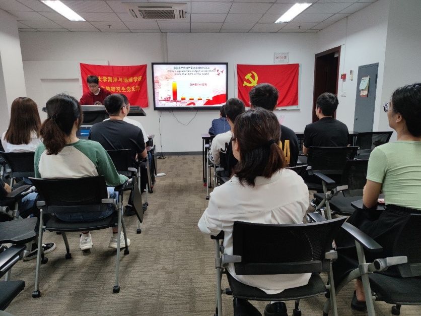 支部积极拓展宣传思路,提升思想政治引领力。结合学科专业特点,学习宣传习近平总书记关于海洋强国的重要论述,线上开展理论宣传、心得分享等,线上线下结合,延伸党的二十大精神的宣传“广度”;协助学院举办“心怀国之大,情系海之深”海洋主旨论坛,聆听老中青三代海洋人讲述闪闪发光的个人故事,通过微党课、微宣讲等活动,激励青年砥砺奋进,让党的二十大精神入脑入心,扩展宣传“深度”;结合科研热点,与教师党支部联合讲述“国鱼传奇”——宁德大黄鱼的“育种”故事,在理论宣讲中融入“海”味,提升理论宣讲的“亮度”。