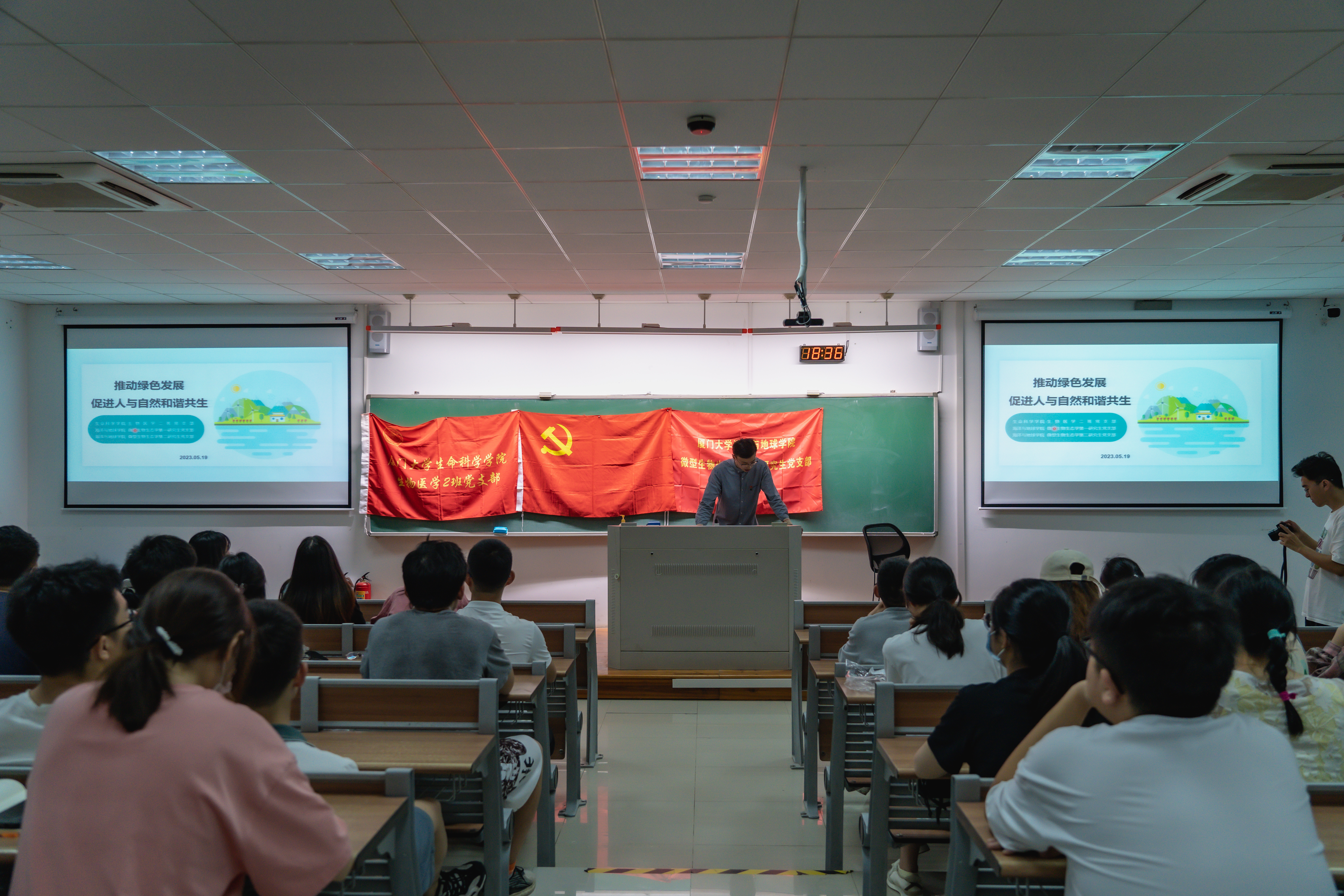 为扎实推进学习贯彻习近平新时代中国特色社会主义思想主题教育,深刻把握党的二十大报告中为实现“双碳”目标提出的新思路新举措,5月19日晚,海洋与地球学院微型生物生态学第一、第二研究生党支部与生命科学学院生物医学二班党支部在学武楼C202开展联学共建活动。