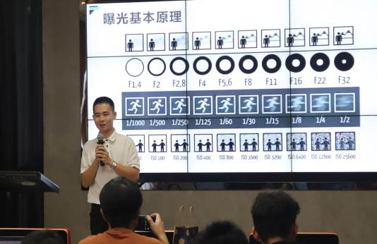 “新闻媒体并不是社会机构的替代品,而更像是探照灯射出的躁动不安的光柱 ,一个接一个地照亮原本藏匿在暗夜中的事物。”林宇阳用李普曼的“拟态环境”学说开启这趟摄影宣传之旅,强调我们应该认真对待拍下的每一张照片和写下的每一个字。他结合自身经验,向大家传授了许多实用的摄影知识技能,如曝光的基本原理、摄影构图技巧、后期调整思路等。他通过展示易中天讲座现场、中国金鸡百花电影节志愿者出征大会合影等摄影作品,进一步细致地阐述三分构图技巧、合照的拍摄难点等,强调新闻摄影应突出元素和人的互动。