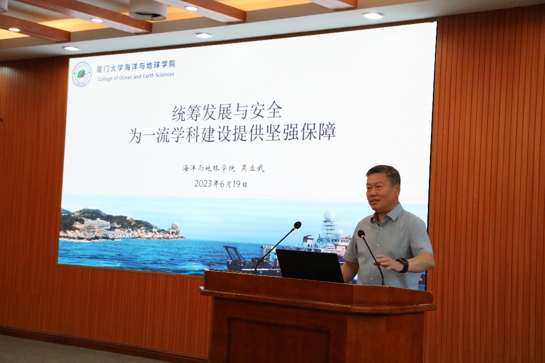 2023年6月是第22个全国“安全生产月”,为深入开展学习贯彻习近平新时代中国特色社会主义思想主题教育,深入贯彻落实习近平总书记关于安全生产的重要论述,进一步做好学院安全工作,海洋与地球学院于6月19日在希平楼C2-403会议室召开2023年安全工作大会。福建省高教学会实验室管理专委会理事长施芝元,学院党委书记吴立武,院长史大林,副院长李骁麟,党委副书记唐腾凤出席会议。学院全体专业技术人员和部分党政人员参加会议。会议由院党委副书记邱荣锋主持。