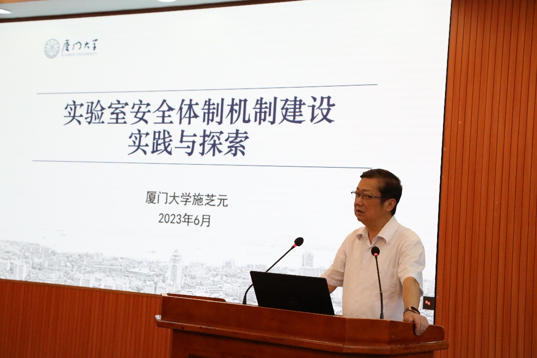 最后,施芝元作《实验室安全体制机制建设实践与探索》专题报告。他介绍了实验室安全工作的相关要求,结合海洋与地球学院的学科特点,围绕体制机制建设、信息化建设、安全管理、安全教育、安全检查等方面分享了实验室安全体制机制的构建与实践,深刻阐释了高校实验室安全管理工作的要点和重点。他以详实的案例剖析了学校实验室安全工作存在的隐患,重点强调了一些注意事项,为我院进一步做好实验室安全工作提供了有益启示。