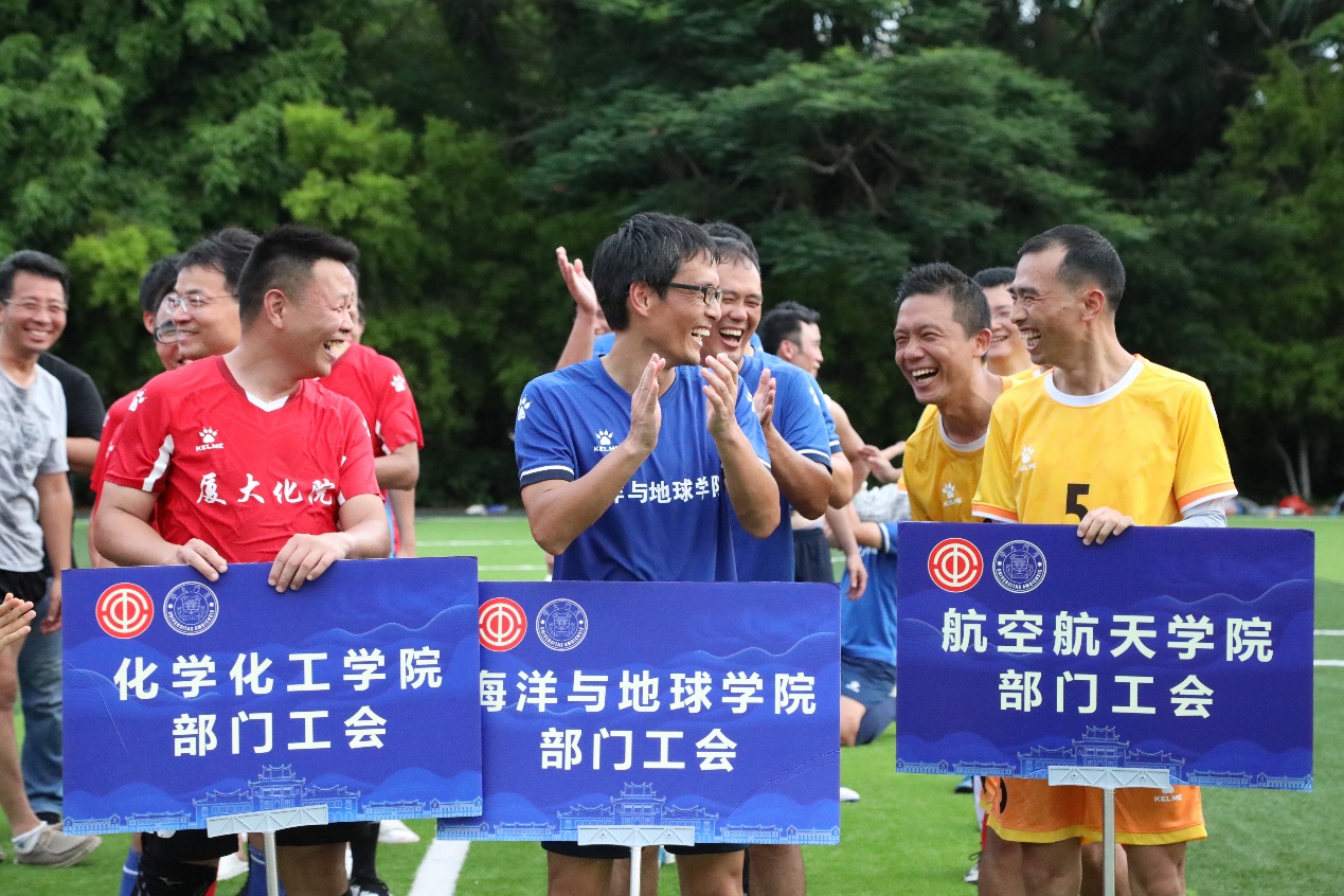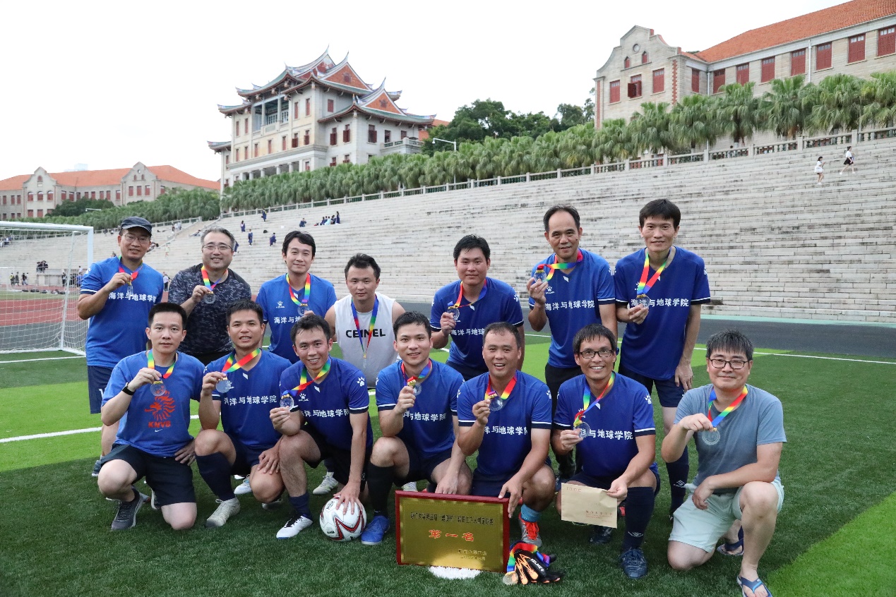 6月24日下午,厦门大学第五届“嘉庚”杯教职工六人制足球赛决赛在思明校区上弦场开赛。我院教职工足球队凭借出色的表现,以1:0战胜化学化工学院足球队,最终夺得比赛的冠军,这也是我院教职工足球队史上首次赢得全校总冠军。校工会领导、学院领导、老师和广大球迷现场观战助威。