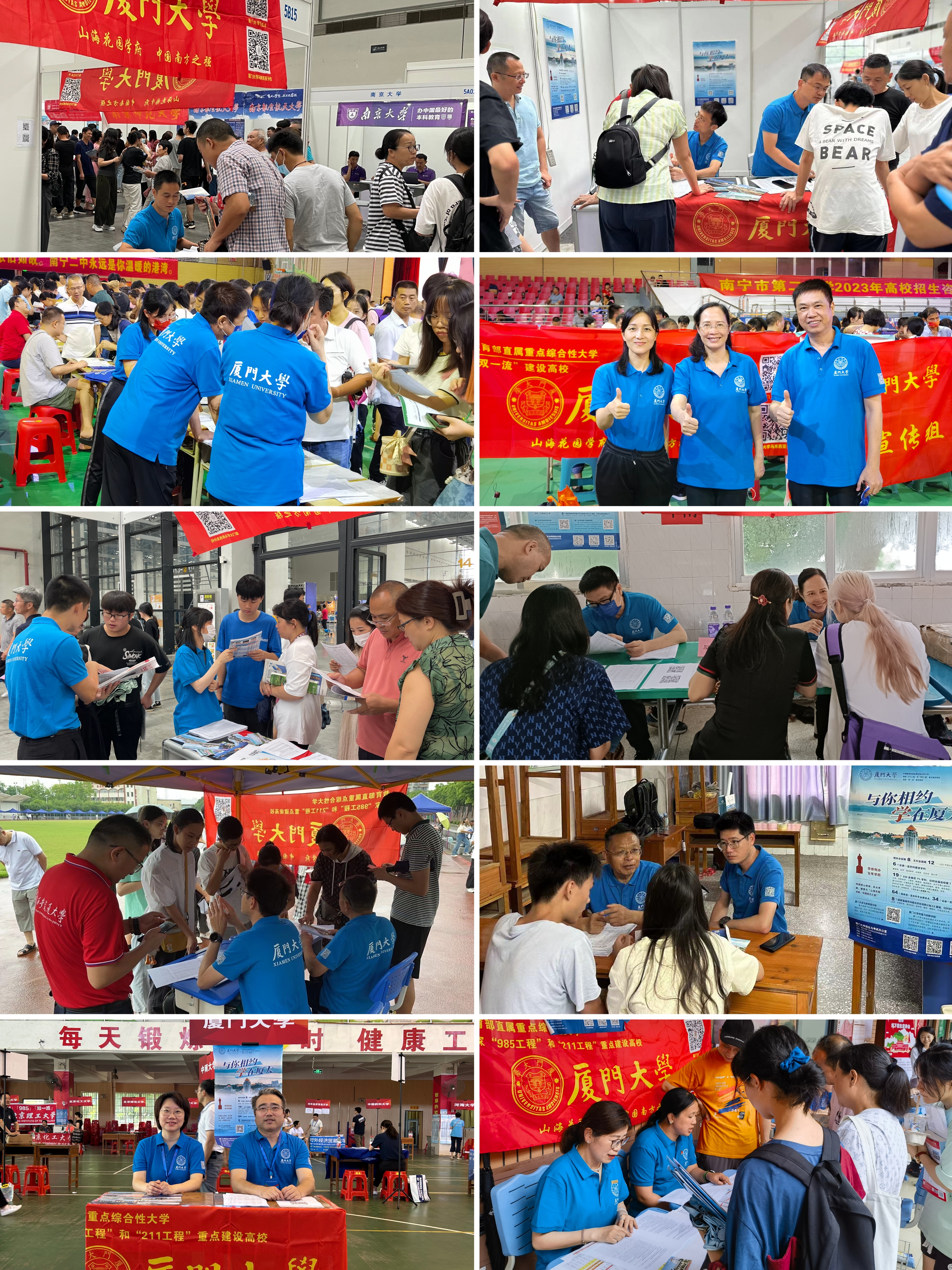24日至29日,我院招生组成员李骁麟、庄伟、吴剑明、林美金、杨帅、林昕、陈蔚芳、杨位迪、雷怀彦、黄迎及生命科学学院教师叶志云、国际合作与交流处副处长刘婉玉等人和校友代表分别前往南宁、桂林、柳州、梧州等地参加当地的高招咨询会。招生宣传组前后参加咨询会共7场,围绕考生关心的问题,从本科招生、院校介绍、专业选择等不同方面为考生作咨询,对厦门大学2023年在广西的招生政策进行了详细解读,为考生与家长答疑解惑。