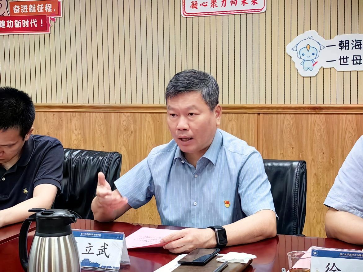 院长史大林重点围绕人才培养、队伍建设、科技创新和社会服务四个方面简要介绍了海洋学科第二轮“双一流”中期建设成效,深入分析了学科在融合发展方面存在的问题和下一阶段的实践路径。他表示,在新一轮竞争态势下,厦门大学海洋学科将以习近平新时代中国特色社会主义思想为指导,瞄准“国际一流、中国品牌”的建设目标,正视首轮建设中存在的问题和不足,以国家重大战略需求与经济社会发展需要为导向,以立德树人根本任务为牵引,以师资队伍和平台建设为抓手,紧紧围绕建设方案抓落实、促提升,全面构架以海洋科学为核心的高原学科体系,力争把厦门大学建设成世界一流的海洋科学人才培养基地和科学研究中心,书写高质量服务海洋强国、教育强国、科技强国、人才强国建设的蓝色篇章!