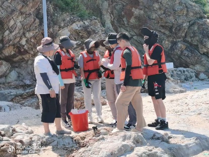 7月5日,海洋生物、海洋化学方向实习小分队前往大亚湾开展潮间带调查,期间前往许洲、鹅洲海岛调查,并完成了LNG火电厂、巽寮村、惠东港口海龟国家级自然保护区、淡澳河口与澳头湾海域的海洋环境调查。