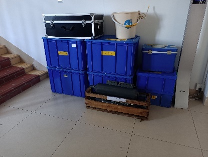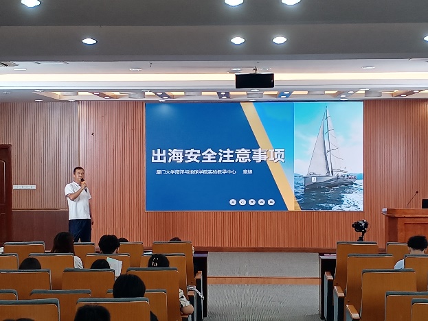 7月3日-4日,学院开展了专题培训,各专业方向的指导教师向同学们全面系统地介绍了历年实习航次概况、实习区域海况、调查站位的选择依据以及各专业的海洋综合调查工作方法。紧接着,同学们又紧锣密鼓地投入到备航工作当中。大大小小的蓝箱、仪器、网具等调查与采样工具整齐的摆放在学院门口,老师们耐心讲解备航注意事项,同学们认真听讲并参与物资的搬运。经过一系列的培训,同学们顺利完成了海上调试工作,并通过了《出海安全与急救虚拟仿真实验》、《海洋浮游动物生态调查与分析》两个虚拟仿真实验教学项目的考核。