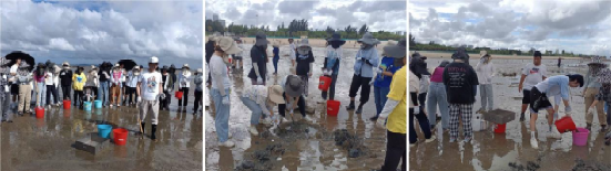 7月2日,同学们克服了天气等因素的影响,在厦金湾开展了沙岩相潮间带生态调研活动,掌握了潮间带沙岩相生态调查的基本操作,增强了开展野外科学调查的能力,加深了对我国近海生物多样性及其保护意义的理解。