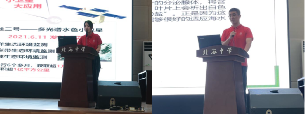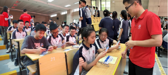 紧接着,实践队员,2022级硕士研究生李温情重点推介了厦门大学海洋学科,并介绍了自己本科、研究生期间在厦门大学的学习和生活。她谈到,参加学科竞赛、出海科考、走进纳木错等学习实践积累了扎实的专业基础;校园音乐节、运动会、心理剧、毕业晚会等丰富多彩的学生活动为发挥自身特长提供了平台;游泳馆、健身房、高尔夫球场等场地与设施为培养兴趣、增强体质提供了条件……真挚生动而又接地气的介绍唤起了同学们对厦门大学的向往。随后,实践队员秦亚鹏做《海岸卫士红树林》的科普报告,进一步加深了同学们对红树林的保护意识,号召大家从身边小事做起,共同保护“绿色的海岸卫士”同学们积极参与互动答疑,现场气氛十分热烈。招生宣传组还为同学们带来了精心准备的厦门大学明信片以及制作精美的赶海手册,同学们更直观的感受到“南方之强 山海花园”学府的秀美风景。