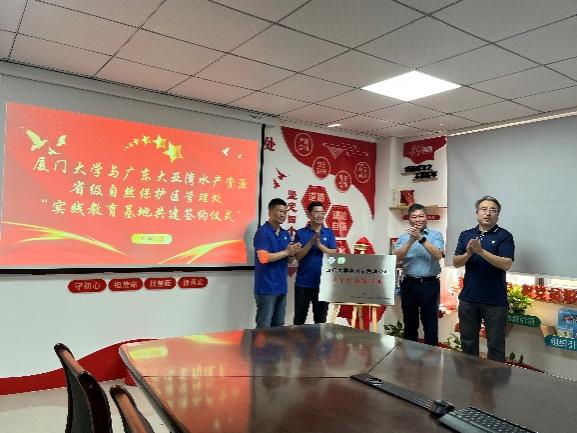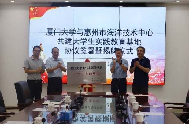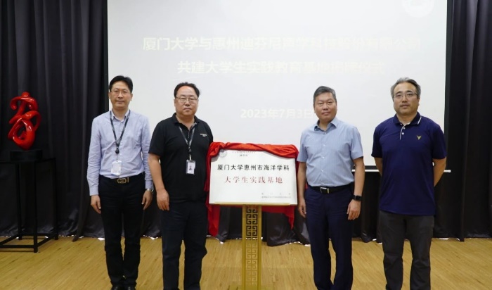 近日,厦门大学惠州市海洋学科大学生实践基地挂牌仪式在广东省惠州市举行。海洋与地球学院党委书记吴立武,副院长李骁麟,海洋化学与地球化学系主任杨伟锋,应用海洋物理与工程系主任童峰,学院陈明茹教授、邓永智副教授、朱红梅实验师等参加挂牌仪式。广东大亚湾水产资源省级自然保护区管理处主任张志敏、惠州市自然资源局调研员丘光利、惠阳区政协副主席梁浩亮、惠州市海洋技术中心主任王军星、惠州市渔业研究推广中心主任于鑫、惠州迪芬尼声学科技股份有限公司董事、副总裁刘晓彤、人事行政总监刘小函等共建单位代表出席活动。