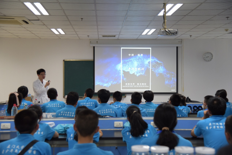 科学实践以生动有趣的讲座开始,一幅2018年第一届“海丝学堂”上浮游生物采样航拍影像为营员们展现了真正远洋采样作业场景和有“厦门大学第五校区”之称的“嘉庚”号科考船。