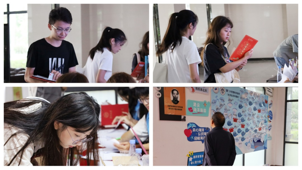 迎新当日,注册现场井然有序,校园焕发勃勃生机。经过核验缴费、查验身份证、分发材料等工作,新生们顺利完成报到相关手续。注册点醒目的签名背景墙上印着嘉庚号科考船和海丝卫星,向新生展现了海洋与地球学院优秀的发展成果,增强了厦大海洋学子的自豪感。