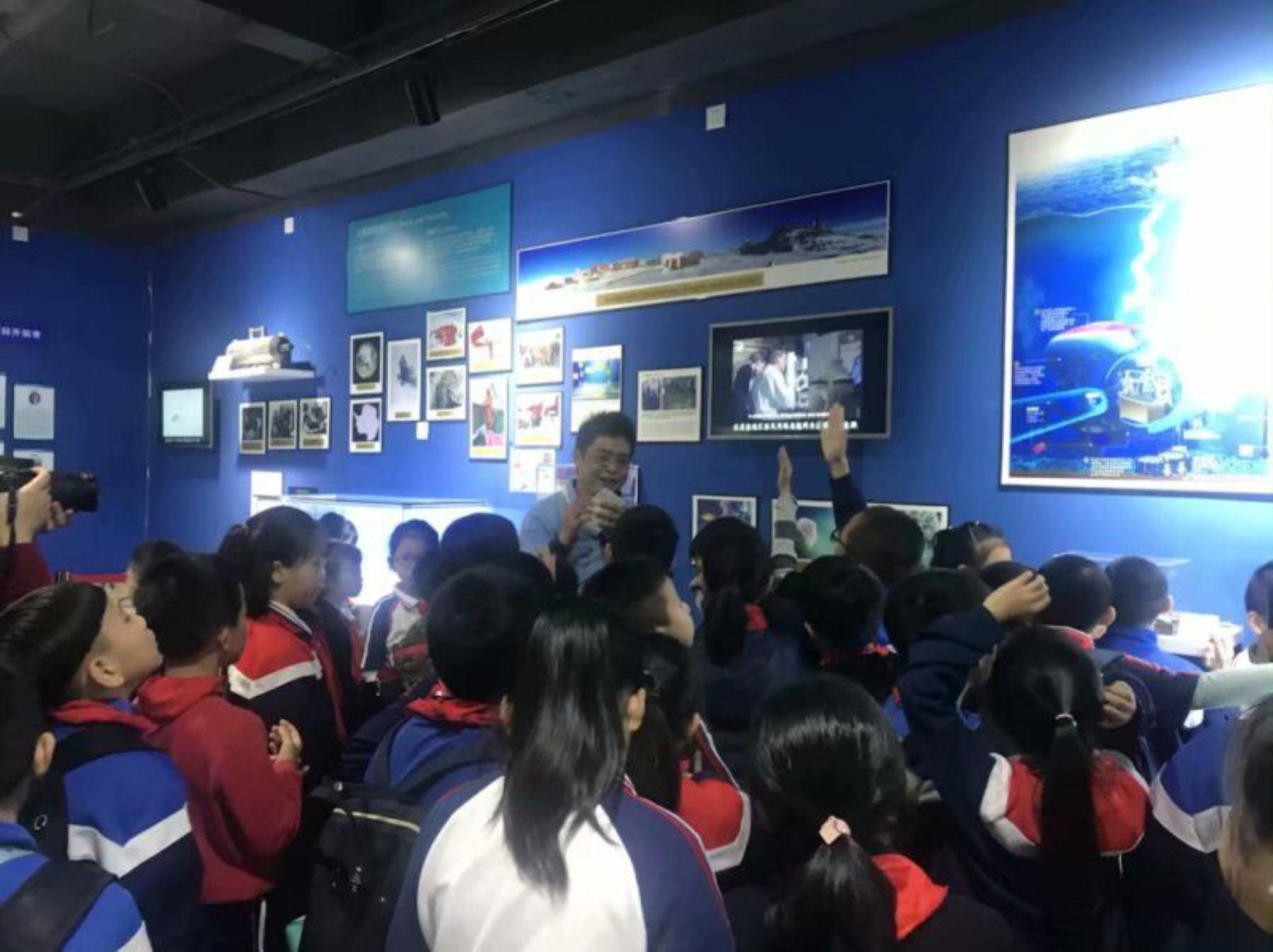 在听完博物馆负责人张朝霞老师的讲座以后,整个团队分成五组开始了参观。志愿者讲解员耐心地向孩子们介绍展馆里的一切。这一次,海洋与地球学院的郭老师也加入了讲解员的队伍,大家都听得津津有味,更是对水下的世界充满了好奇,认真地观看了我校“嘉庚”号科考船深潜探测时拍摄的视频。
