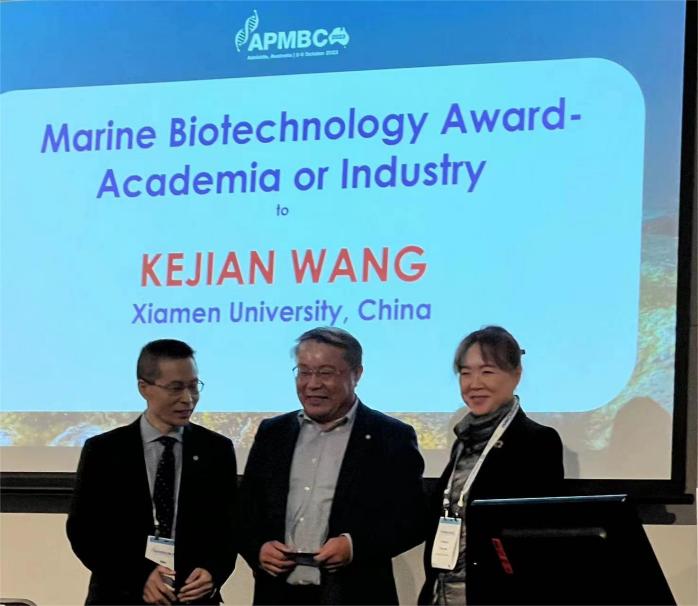 这次联合会议上,厦门大学海洋与地球学院、近海海洋环境科学国家重点实验室王克坚教授的系列研究成果“海洋动物新型抗菌肽的发现与产品创制及其示范应用”荣获首届“海洋生物技术奖—学术或工业界”(Marine Biotechnology Award -Academia or Industry)。