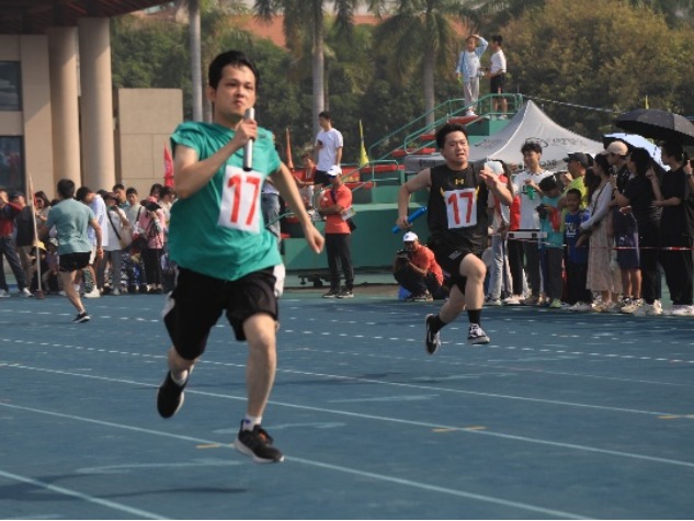 最令人期待的是紧张刺激的20*50米接力赛。由我院男女教职工20人组成的代表队再次征战,部分运动员尽管还未完全从参赛的体力损失中恢复,依然全力以赴参加比赛。运动员们奋力奔跑,完美交接棒,在观众的欢呼和呐喊声中,我院代表队取得小组第二的成绩,虽最终以亚秒级的微弱差距,遗憾错失总成绩名次,但运动员们奋力拼搏的声影依然是赛场上最靓丽的风景线。