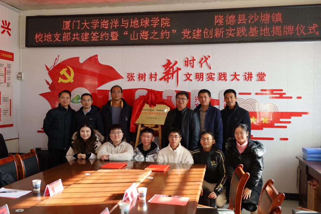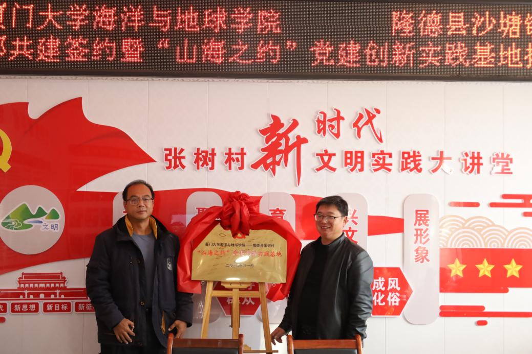 随后,学院团委副书记徐惠聪代表厦门大学海洋与地球学院国重第三研究生党支部与隆德县沙塘镇张树村党支部签订共建协议。邱荣锋和张旭东共同为厦门大学海洋与地球学院-隆德县张树村“山海之约”党建创新实践基地揭牌。